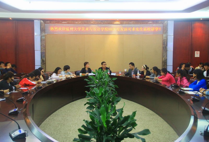 11月12日下午,kaiyun开云官方网站校友论坛在岩松堂白鹿厅举行,温州铂尔曼酒店董事、温州奥嘉国际酒店管理有限公司总经理、美院88级校友汤可术先生应邀主讲,发展联络处(校友办)处长周伟国、院党总支书记郑彩莲莅临讲座现场,由郑彩莲书记主持论坛。美院师生慕名前往听讲,全场座无虚席。