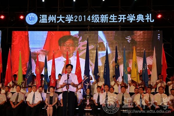丹桂飘香沁人心,最是金秋好时节。9月28晚, 2014级新生开学典礼在南校区操场隆重举行,校领导陈福生、蔡袁强、林娟娟、牟德刚、薛伟、赵敏、吴金法、蔡曙光、黄少铭、陈安金、方益权、潘玉驹,以及相关部门、各学院负责人和2014级全体新生参加了典礼。校党委书记陈福生主持典礼。kaiyun开云官方网站2014级全体新生积极参加这场意义重大的开学典礼。 蔡袁强校长的致辞”潮”味十足。他说,自我成长意味着独立自主,它能够为新生打开通往成功的一扇窗。他勉励学生,追寻自我成长,要像”旅行者一号”探测器一样,带上好奇之心去探索世界;追寻自我成长,要在”大数据”的”大时代”与追求个体需求的”小时代”并存年代,秉持明智之心去认识社会;追寻自我成长,要捧出真诚之心去结交朋友,诞生更多优秀的”中国合伙人”;追寻自我成长,还需如印度孟买佛学院的新生”低头弯腰走侧门”,常怀谦卑之心去脚踏实地。 典礼上,教师代表、人文学院俞为民教授告诉新生,实现目标、达成理想的秘诀在于”有志气,要勤奋”,谆谆教诲中包含着老师对学生的殷切希望和真诚祝福;而86届校友、温州市第三中学校长吴步旭老师以亲身经历,同窗纪事鼓舞新生”学校提供了一个平台,真正的努力要靠自己”;2014级新生代表,国际合作学院钱燕飞感叹道:”在老师们的谆谆教诲下,我们必将不忘初心,读书与行路并存,常与良师益友扺掌而谈。今天是大学军训的结束,也是人生辉煌的时刻。” 十六位学院”家长”分别向新生们诠释学院精神,风格各异,各显特色,将典礼推向高潮。 kaiyun开云官方网站院长李运河教授的精彩发言激励起美院新生的温大情怀。新生们全体起立,大声喊出自己的梦想,呼应院长的发言,并拿出手机并开启手电筒挥舞,成为田径场上一片闪耀的“银河”之星。 ”黑发积霜织日月, 粉笔无言写春秋。”师生的联袂朗诵,谱写出浓郁的师生恩、深厚的温大情。”我从此岸走到彼岸,整整一十九年。”从此以后,2014级新生人生中最美好的青春时光将在温大度过,他们将为璀璨人生写下浓墨重彩的一笔。 一枚枚见证了kaiyun开云官方网站办学80年的风雨历程和辉煌成就、凝聚了一代代温大人的赤子情怀的校徽庄重地佩戴在每位新生的胸前。它凝结着厚重的温大底蕴、传承着不朽的温大精神,抒发着博大的温大情怀。 ”东海水,雁荡山,我温大精神,浩浩宕宕……”气势磅礴的校歌声,在校园上空久久回响。 2014级美院新生以温大之名,扬梦想之帆,一起追寻自我成长。