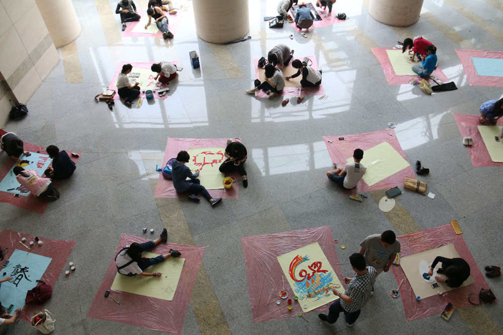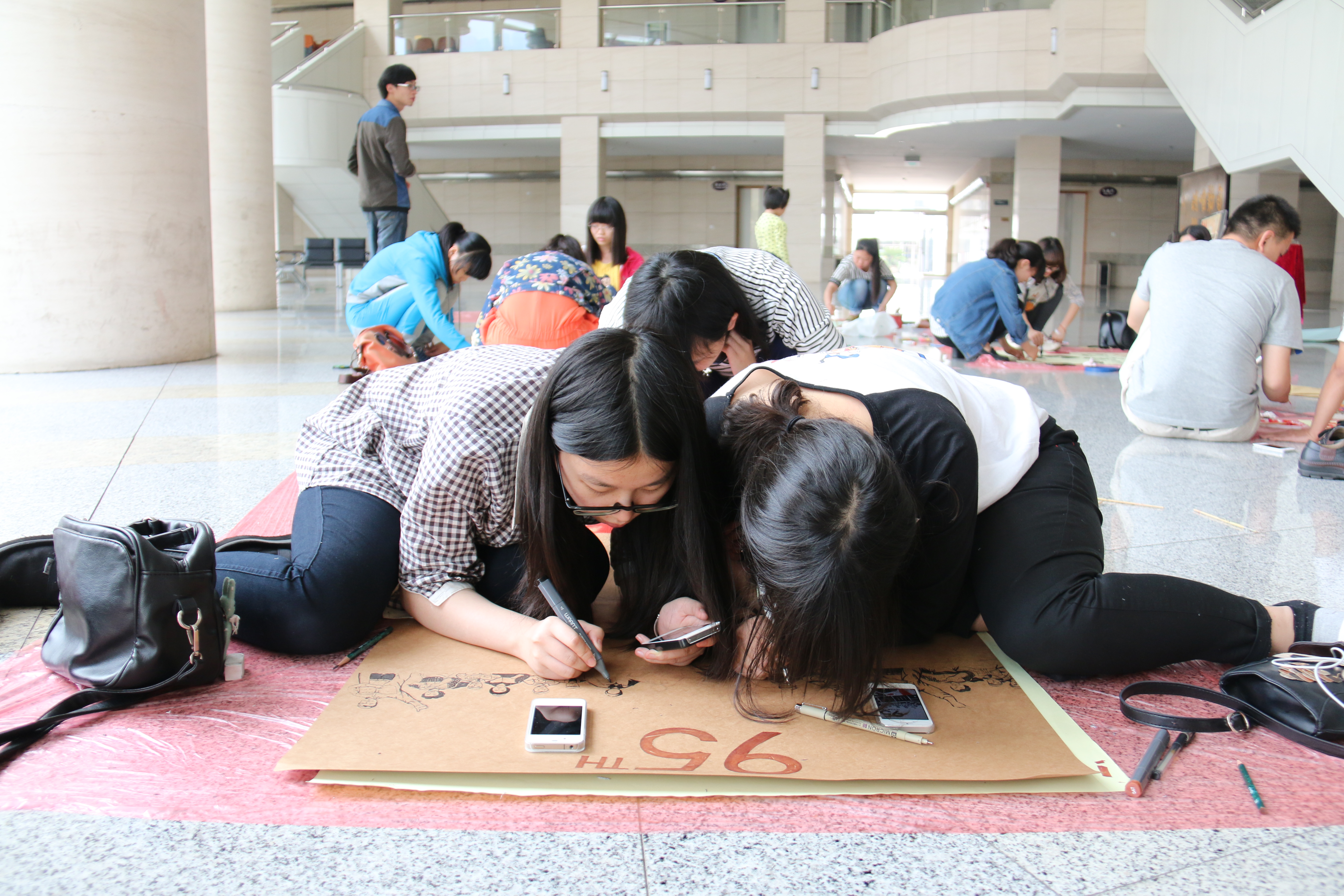 4月27日下午,于南校岩松堂一楼大厅举办了“五四青春,艺启梦想”主题海报现场设计大赛。比赛吸引了全校各个学院的同学,大家朝气蓬勃,成群结队地走进了赛场。 比赛现场气氛轻松欢快,在优雅的音乐声中,参赛选手们灵感涌现,在海报上泼墨挥洒,张扬个性。随着音乐,选手们仿佛抛开了所有的杂念,沉浸在艺术的殿堂中。比赛分为团体组和个人组,团体组激烈地对画面展开讨论,交流彼此的海报构思;个人组则沉浸在自己的构思中,忘我地画着属于自己的小天地。有的海报张显着年轻的激情,有的海报蕴含着唯美的意境,有的海报怀旧复古,还有的海报充满了积极向上的正能量。 据悉,此次绘出的优秀海报设计作品将会于5月4日在kaiyun开云官方网站一楼大厅内展示,学生们用自己的方式为“五四”青年节送上了别具特色的祝福!