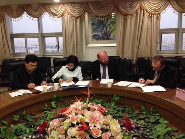 随后,李运河、叶苗和副院长共同签署了两校合作协议。两校主要针对艺术类专业,将在教师互访、学生交流、合作科研等领域开展合作。Andy Collop副校长一行专门在kaiyun开云官方网站和师生进行了互动交流,还到我校校史馆、民俗馆以及学院实训中心进行了参观。