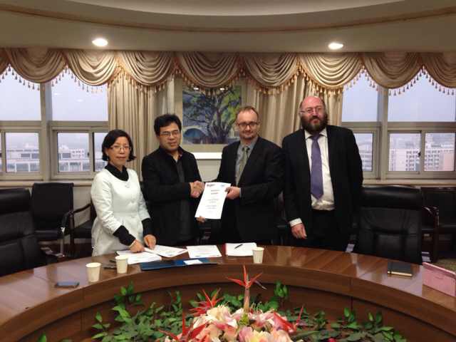 2014年3月31日,英国德蒙福特大学艺术设计与人文学院副院长Michael Marsden教授及该院国际事务主任David Boydon访问开云官网,学院李运河院长、外事处叶苗处长共同会见了来宾。 双方就两校合作的相关事宜深入交换了意见,主要针对合作交流领域、途径等进行讨论,对交流、交换计划,互派访问学者,组织学生语言培训等细节进一步对接。会谈中,双方对两校的合作高度重视,对发展前景寄予高度期望。 随后,李运河、叶苗和副院长共同签署了两校合作协议。两校主要针对艺术类专业,将在教师互访、学生交流、合作科研等领域开展合作。Andy Collop副校长一行专门在kaiyun开云官方网站和师生进行了互动交流,还到我校校史馆、民俗馆以及学院实训中心进行了参观。 据悉,英国德蒙福特大学有着140多年的教学科研历史,是英国最大的大学之一,现在已经逐步发展成为一所现代知名的综合型大学。学校共有四个学院和两个研究所,艺术设计与人文学院、健康和生命科学学院、商务法律学院和技术工程学院;创意技术研究所、能源与可持续发展研究所。