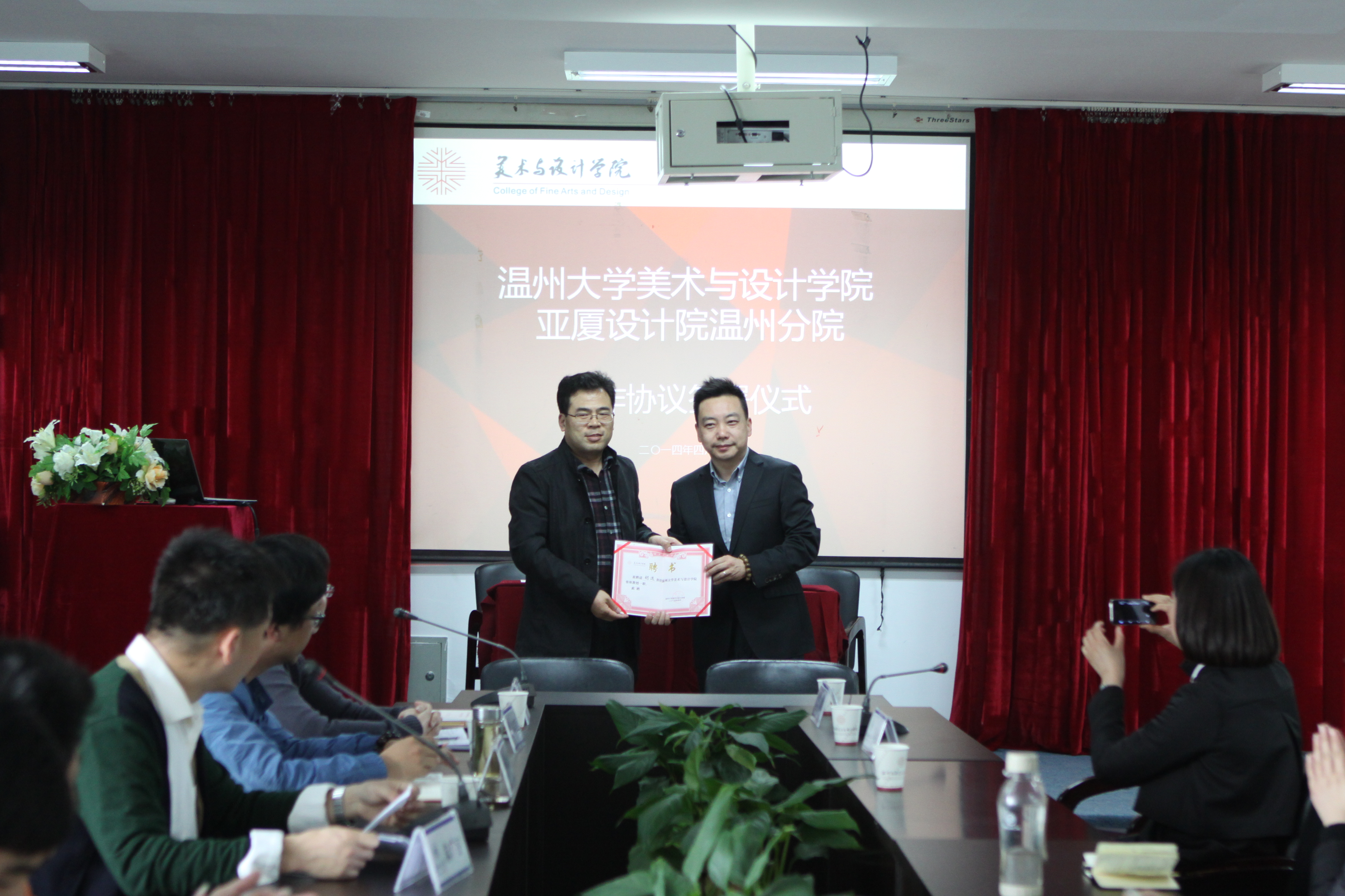 4月9日下午,开云官网与亚厦设计研究院温州分院合作协议签字仪式在开云官网2B4001隆重举行。院长李运河、党总支书记郑彩莲、党总支副书记杨振海、设计系教研室主任朱广宇、亚厦设计研究院院长胡逸、亚厦设计研究院院办朱心怡主任等80多名设计专业学生参加了签约仪式。仪式结束后,亚厦设计研究院院长胡逸为开云官网学生开展了“设计·文化·创业”学术沙龙活动。 李运河院长在致辞中表示:亚厦设计研究院和美术学院的合作从开始到现在一直都是很紧密的,双方在设计与教学理念是相近的。此次合作,亚厦设计院为开云官网搭建了一个强有力的平台。我们希望基于这个共同的目标,双方携手共进,加强合作,为彼此的发展取得新成果而努力。 在双方代表的见证下,李运河院长代表本院与亚厦设计研究院温州分院胡逸院长签署了《kaiyun开云官方网站与亚厦设计研究院温州分院合作协议》。签约之后,李运河院长向胡逸院长颁发客座教授聘书。至此,kaiyun开云官方网站和亚厦设计院温州分院合作签字仪式取得圆满成功! 本次合作是开云官网与地方合作特色办院的一次助燃器,在此基础上,开云官网在设计人才培养上将取得喜人成绩!