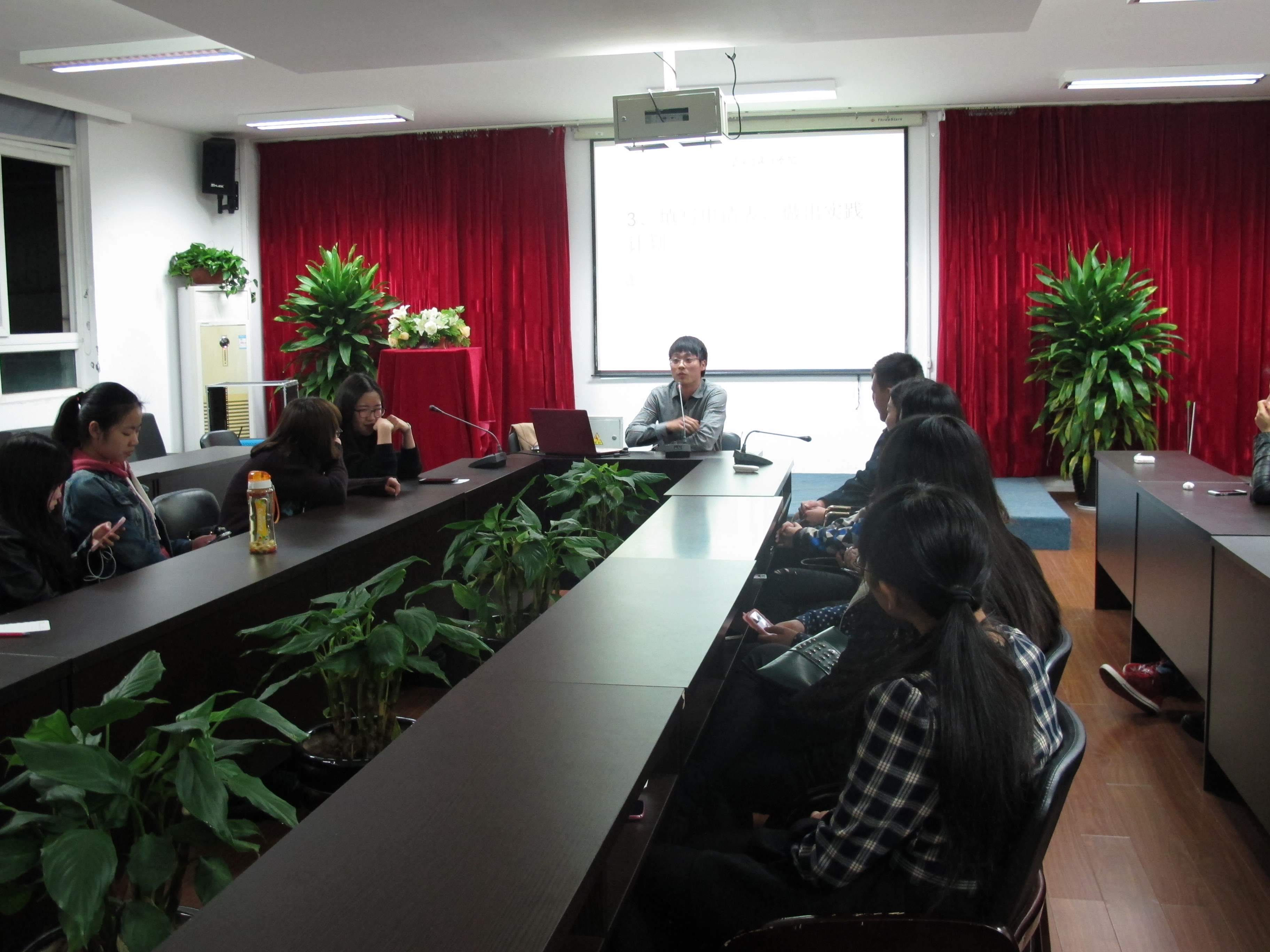 3月19日晚,kaiyun开云官方网站团委学生会在2B—4001举办了2014年暑期社会实践基础培训班。主讲师是创业实践部的副部长金李斌同学,2013级部分同学参加了此次讲座,讲座由办公室童超伦同学主持。