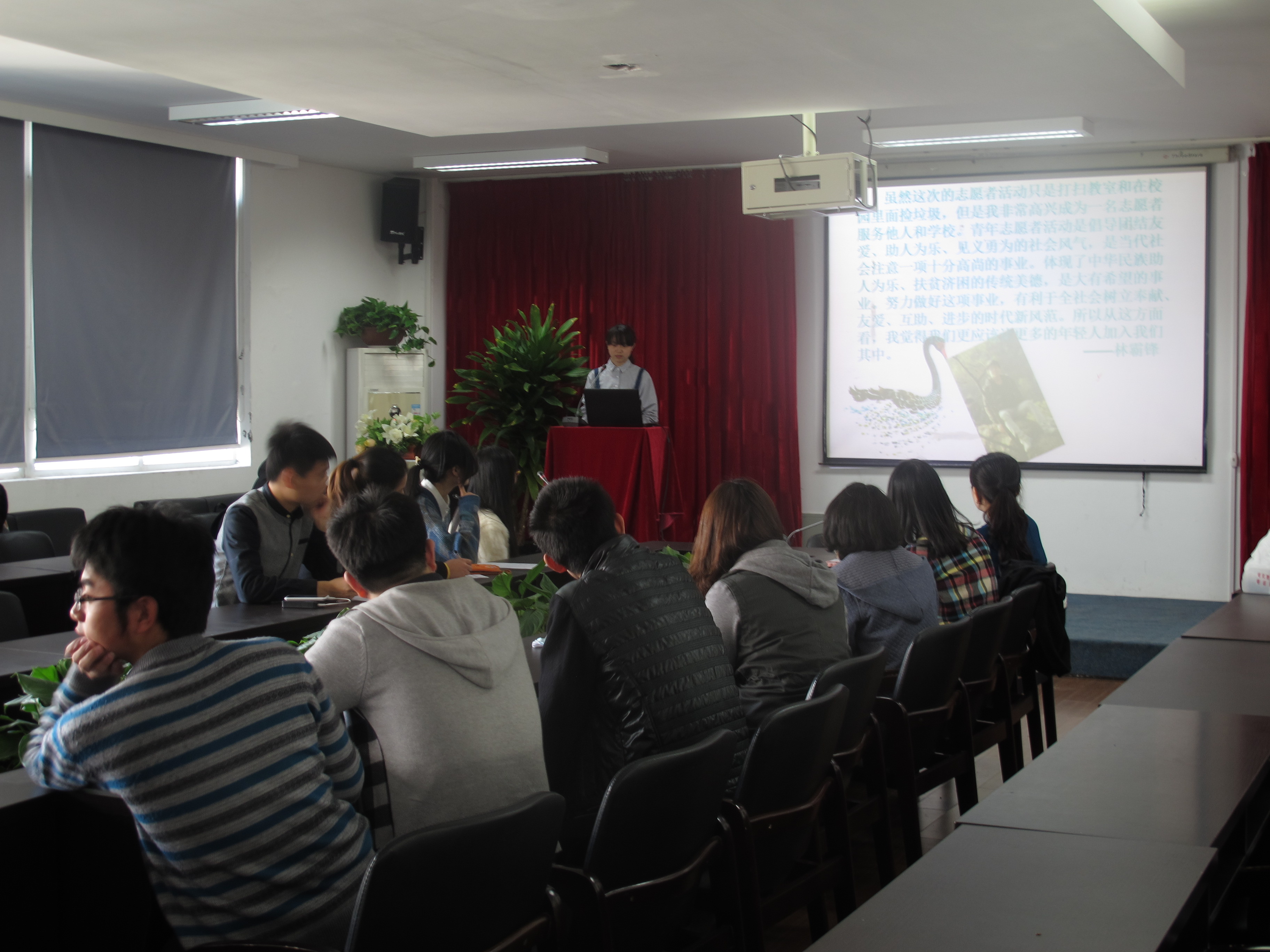 为传承和弘扬雷锋精神,展现当代大学生的文明风貌。3月22日下午,开云官网“艺家人”青年志愿者协会在2B-4001开展了以雷锋月活动为主题的ppt展示评比,学院辅导员杜茜老师和青协副会长陈周红、冯瑜瑜担任评委参与了此次活动。 从3月15日,艺家人就开展了以“汇聚感动,传递温暖”为主题的雷锋月系列活动,参与活动的同学被分为8支小分队,每队有4-6名成员。同学们纷纷自发地以各种形式为社会文明贡献着自己的力量,有的队来到社区小学进行一对一的义务支教,有的队赶到茶山镇打扫地面上的垃圾,有的队走进教学楼清理墙面上的污迹,有的队来到住宿区整理胡乱摆放的自行车,有的队走向敬老院看望孤寡老人……分队成员将这些温暖的瞬间制作成PPT参与评比,与大家一同分享心得体会。 当PPT上出现小朋友画出的精美图案、老人嘴角露出笑容和学子为清洁的学习环境而感谢的画面时,志愿者说:“通过活动,让我们真切感受到了助人的快乐和喜悦,评选的结果已经不重要了,重要的是希望这些感动人心的照片通过传递后,能汇聚出社会的大爱,为和谐社会添砖加瓦!”