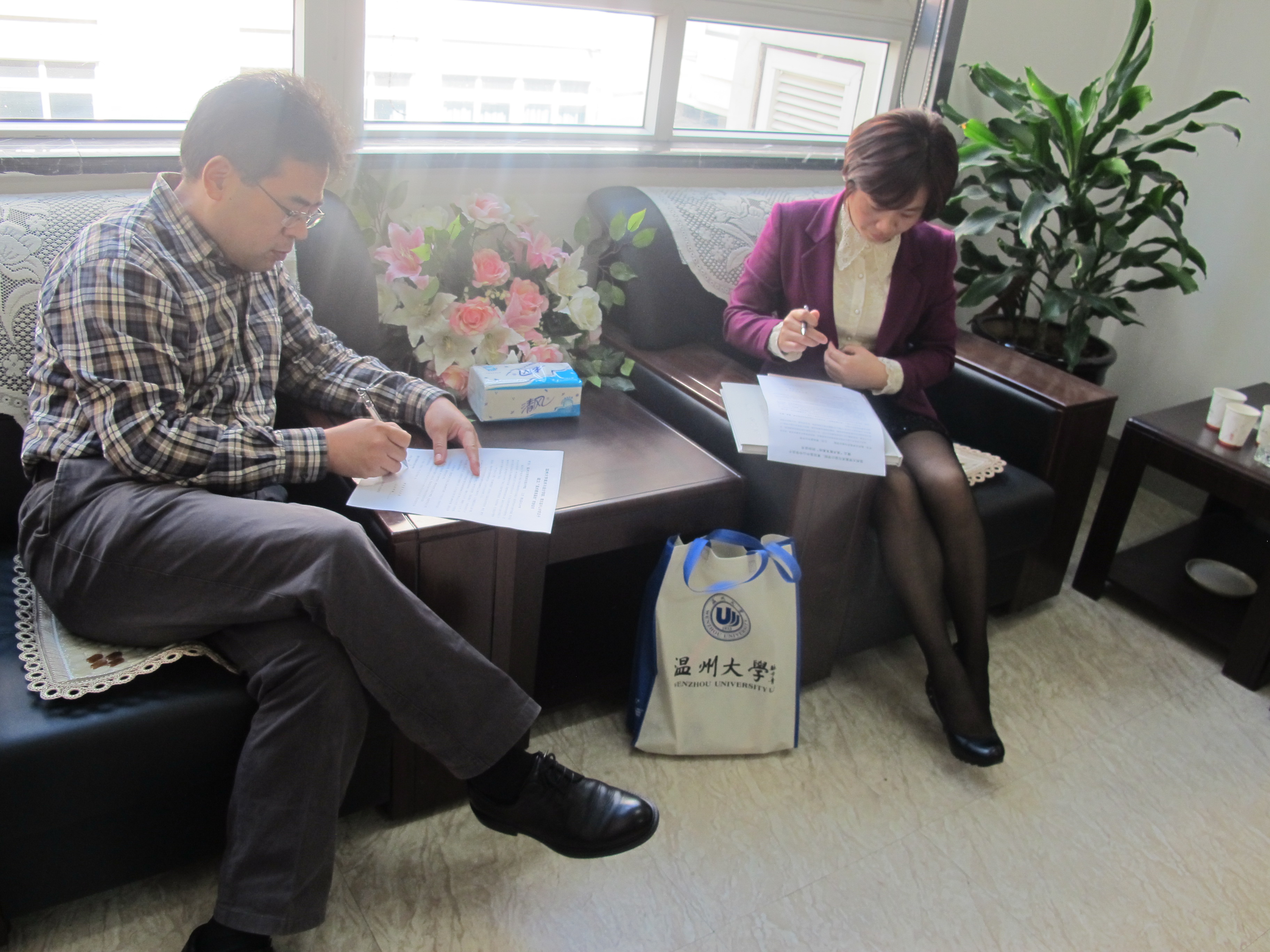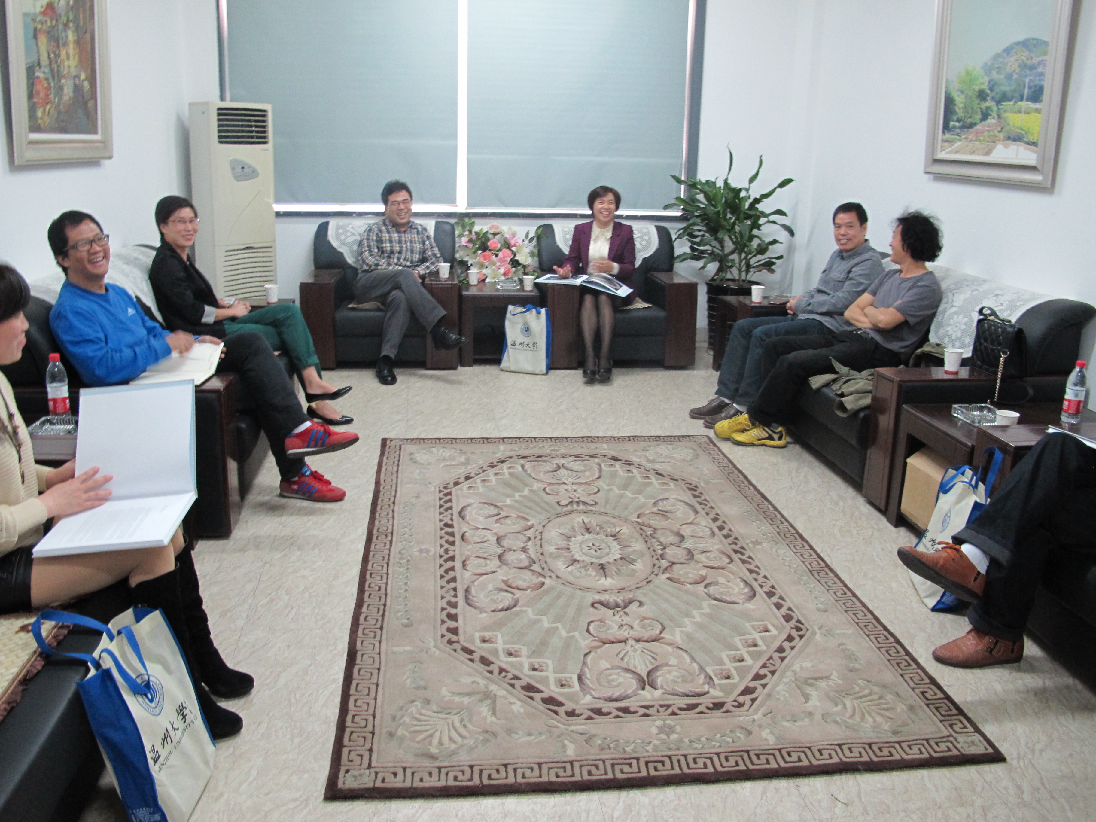 2013年10月25日,青田中山中学校长严银红一行五人来开云官网参观交流。院长李运河、党总支书记郑彩莲、副院长蔡可群等出席了座谈会。