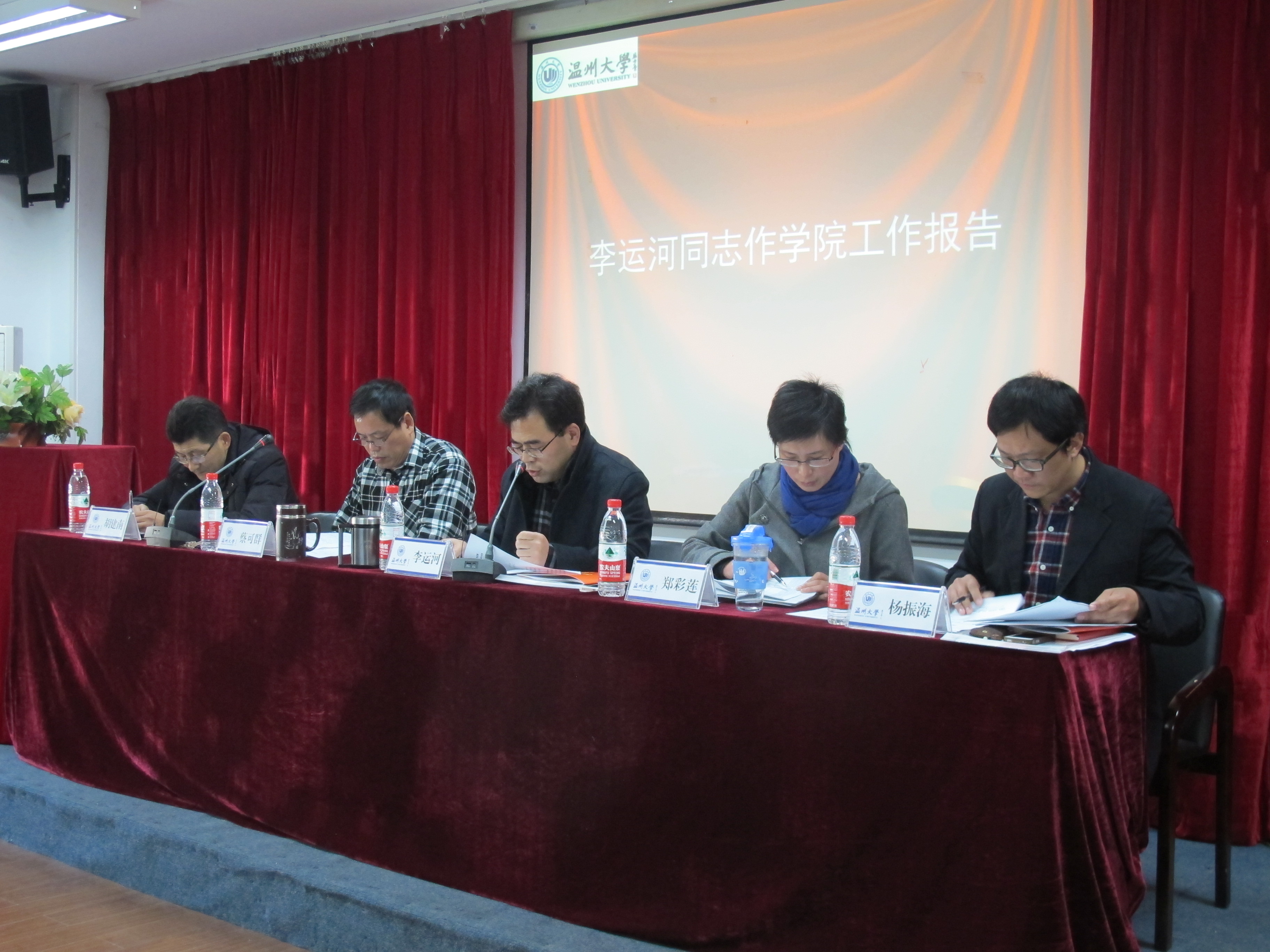 1月3日下午,kaiyun开云官方网站第二届教职工暨工会会员第三次会议在2B4001会议室隆重召开。学院党政领导班子成员、全院教职工60余人出席了本次会议。党总支书记郑彩莲作关于大会筹备工作的情况说明,并宣布大会开幕。开幕式由党总支副书记杨振海主持。 会上,院长李运河作了题为《着眼未来,务实创新,推进学院又好又快发展》的学院年度工作报告。《报告》从五个方面总结回顾了开云官网2013年完成的主要工作和取得的成绩:一是教学内涵建设和人才培养质量又有新提高;二是学科科研建设又有新跃升;三是师资队伍建设取得新进展;四是党建学生工作取得新成果;五是80周年校庆各项工作稳步开展。《报告》也对学院2014年重点工作思路也做了说明,李院长指出,要认真学习贯彻落实党的十八届三中全会精神,结合学院具体工作实际,着眼未来,务实创新,努力做好各项教学、科研项目培育与申报工作,鼓励教师外出积极交流,全力推进学院各项工作更上新台阶。《报告》最后指出,过去的一年,学院发展事业取得了令人可喜的成绩,这是全院师生同心同德、共同奋斗的结果。新的2014年,学院的发展任务将更加艰巨,他希望全院师生努力发挥主人翁意识,进一步坚定信心,真抓实干,协同创新,为实现学院的内涵式发展做出新的贡献! 随后,工会主席胡建南同志作了学院《工会工作报告》,王薇同志作了学院《财务审计报告》,全体与会成员通过举手表决的方式,一致通过了三个报告。 最后,学院党总支书记郑彩莲致闭幕词,她提到,学院一年来所取得的各项成绩离不开学院全体教职员工的努力支持与积极配合,全院教职员工认真履行会员职责,行使民主权利,积极参与学院建设,实现了推动学院事业发展与实现个人梦想双促进。郑彩莲书记宣布会议胜利闭幕。 本次大会是在学院深入贯彻落实党的十八届三中全会精神,深入推进学院“十二五”发展规划各项任务的关键时期所召开的一次大会。通过本次大会,进一步凝聚了力量,明确了发展思路,为学院的进一步发展奠定了思想基础。 全体起立,奏国歌 蔡可群副院长主持会议 李运河同志作学院工作报告 胡建南同志作学院工会工作报告 王薇同志作学院财务审计报告 郑彩莲同志致闭幕词