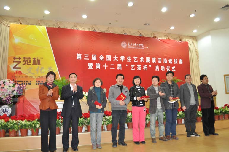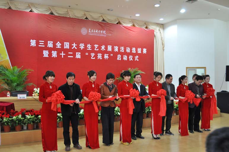 2011年3月30日1:30,在南校区会展中心雁山厅隆重举行了kaiyun开云官方网站第三届全国大学生艺术展演活动选拔赛暨第十二届“艺苑杯” 启动仪式。kaiyun开云官方网站宣传部部长潘玉驹、kaiyun开云官方网站团委书记杨立淮、kaiyun开云官方网站院长李运河、党总支书记郑彩莲出席了本次启动仪式,会议由kaiyun开云官方网站副院长蔡可群主持。参加本次启动仪式的还有各赛事指导老师以及所有参赛学生。 kaiyun开云官方网站副院长蔡可群首先介绍了kaiyun开云官方网站第三届全国大学生艺术展演活动选拔赛暨第十二届“艺苑杯”文化艺术节,宣读了师生结对分组名单。 kaiyun开云官方网站团委书记杨立淮随后发布了热情洋溢的讲话,他代表共青团kaiyun开云官方网站委员会对本次“艺苑杯”表示了祝贺,并从校园文化建设的高度,对本次“艺苑杯”提出了殷切的希望和要求。 随后,所有与会领导为“艺苑杯”赛事指定老师颁发了聘书。在指导老师代表张振岳和学生代表陶益发言中,他们各自从不同的角度阐述了对本次活动的理解和态度。 kaiyun开云官方网站院长李运河在发言中提出,本次“艺苑杯”活动要求全院动员,全员参与,对活动的组织安排、宣传贯彻等方面提出明确具体的要求,他希望通过“艺苑杯”能培养一批具有文化素养和创作才能的青年学子。 kaiyun开云官方网站宣传部部长潘玉驹最后发表致词,在讲话中他强调了文化的意义和重要性,认为一个国家的发展应从“法治”逐渐向“文治”转变,大学的发展必须重视文化的建设和繁荣。他对kaiyun开云官方网站举办的“艺苑杯”表示了赞赏,认为其内容丰富、意蕴深远、特色鲜明,也代表kaiyun开云官方网站宣传部向美术学院本次的“艺苑杯”表示了祝贺。 最后,kaiyun开云官方网站党总支书记郑彩莲宣布kaiyun开云官方网站第三届全国大学生艺术展演活动选拔赛暨第十二届“艺苑杯”正式启动,所有与会领导为本次启动仪式剪彩,正式拉开了kaiyun开云官方网站第三届全国大学生艺术展演活动选拔赛暨第十二届“艺苑杯”的帷幕。