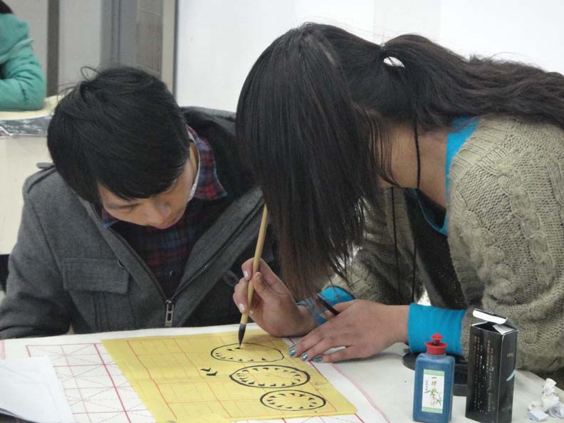 2011年3月27日下午2点,kaiyun开云官方网站服装楼2a306的教室里,素质拓展培训的书法班如期开班。本次的指导老师为开云官网国画班的优秀学生,她首先教没学过的同学们练楷体,而已有一定基础的同学则继续练习自己原来的字体,并很认真负责地进行逐一指导。 书法是中国五千年璀璨的文明的凝练,诠释了中国传统文化的内涵。中国文字起源甚早,把文字的书写性发展到一种审美阶段——融入了创作者的观念、思维、精神。每个人都有自己的书写风格,其中较早的比较有名的如我们今天练的颜体、柳体等,他们在书法上的造诣至今令我们顶礼膜拜。而书法培训班正给了我们一个机会去接触我们平时无暇理会的文字艺术,体会中国古代博大精深的艺术文化。 书法可以使人平心静气,怡情养性,陶冶情操。同学们都很珍惜此次机会,在两个小时的时间里耐心的描绘着一笔一划,恍然未决已经下课。名额有限不能让所有想学的人都参加进来,希望下学期依旧有这种机会让更多的人融入进来。