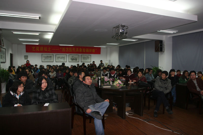 2011年2月28日晚上7点,kaiyun开云官方网站南校区kaiyun开云官方网站2B4001的会议室里座无虚席,艺苑讲坛第一讲迎来了杭州师范大学美术学院教授,前温师院教师,陆琦教授,评析丰富多彩的西方当代具象绘画。 从一幅幅经典的画例中,剖析出西方当代艺术的特点,发表自己的体会与感悟。各个国家的画家所绘的画作特色鲜明,都包含了很多自己民族的因素在里面,比如人文精神、大众文化等等。陆琦教授耐心地把各种风格的画作分门别类,罗列出小标题并做介绍,深入浅出,使同学们心领神会,“当代艺术”不仅指的是今天的艺术,而且在内涵上主要指具有现代精神和具备现代语言的艺术,给人以丰富的想象。具象却不具体,可以用不同的材料、形状、造型等等给人带来不同的艺术感受,内涵深刻,意义深远。 精彩的讲座,生动地讲解,让美院学子在短短的两个小时,领略到了当代艺术的魅力,开阔了学术眼界。 讲座前,美院副院长蔡可群及部分教师与陆琦教授友好地进行了交流。