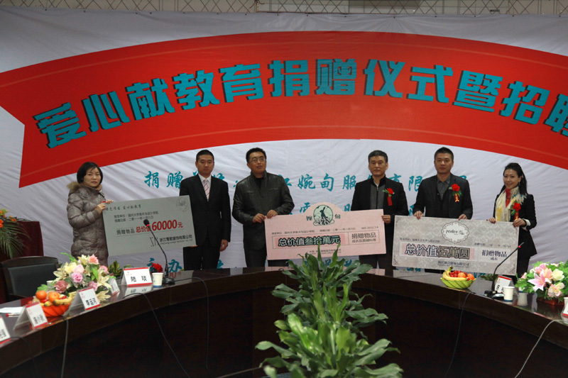 2011年1月6日上午9点,kaiyun开云官方网站爱心献教育捐赠仪式暨招聘会在大学生活动中心白鹿厅隆重举行。kaiyun开云官方网站副校长任柏强、kaiyun开云官方网站就业工作处处长孙广福、kaiyun开云官方网站教务处处长施小秋、kaiyun开云官方网站院长李运河、浙江婉甸服饰有限公司董事长蒋海、浙江飘蕾服饰公司董事长黄瑞东、浙江雪歌服饰公司董事长助理熊伟贤、服装系主任姜岩,服装系副主任张振岳,展示陈列教研室主任金晨怡以及kaiyun开云官方网站全体服装系学生100多人出席了本次仪式,会议由kaiyun开云官方网站党总支书记郑彩莲主持。 仪式中,kaiyun开云官方网站院长李运河院长首先介绍了此次活动的主题,向来宾简单介绍了近几年学院在培养人才所做的努力和教学成效。 kaiyun开云官方网站就业工作处处长孙广福,教务处长施小秋,向浙江婉甸服饰、浙江飘蕾服饰、浙江雪歌服饰三家企业分别赠送了“kaiyun开云官方网站校企合作定点单位”铜牌。浙江婉甸服饰、浙江飘蕾服饰、浙江雪歌服饰随后向温kaiyun开云官方网站捐献了总价值42.5万的服装与面料等物品,服装系系主任姜岩、副系主任张振岳、服装展示教研室主任金晨怡代表学院接过赠品。 在企业讲话中,浙江婉甸服饰董事长蒋海指出高校是培养人才的摇篮,企业对kaiyun开云官方网站的捐献衣方面企业对教育事业的支持也是为温州高校培养服装人才的一种期望,尽所能提供一些资源供学生实践,帮助学生成长,培育学生的动手能力和适应社会的能力。飘蕾服饰董事长黄瑞东则认为,企业应本着尊重人才,重视教育的原则,将过季库存的服装与面料送到kaiyun开云官方网站的学生做教学资源, 不仅符合建设和谐社会、和谐校园的要求,而且是一种爱心传递、资源共享的具体体现,同时为丰富学院服装教学资源、更好地满足师生实践教学中对服装的需求。并想以此为契机,与kaiyun开云官方网站建立长期合作友好关系。 kaiyun开云官方网站任副校长柏强为捐赠仪式致谢辞。他用四句话来总结此次捐赠会的意义:第一:校企合作正在形成一种好的导向。温州知名服装企业来我校共商育人大计,探讨专业发展前沿,这是我校在实施“引进来,走出去”校企合作战略取得的又一次成就;第二:校企正在形成一种好的氛围。通过爱心捐赠丰富教学资源,有利于让学生在校所学与企业实践有机结合,构建绿色服装生命链, 可以实现人才资源、教学资源、技术资源的高度集成与共享,完成最优配置;第三:校企合作正在形成一种好的合力。通过优势互补、资源共享,提高技能型人才的培养质量,让学生早日成为高层实用型技术型人才;第四:本次活动展现了一个好的企业形象,这就是负责任的形象,对人民负责的形象。温州企业在做大做强企业的同时,越来越多的企业家感恩奉献,热心公益,积极主动促进高校教育,促进社会主义和谐社会建设,充分体现了企业家敢于负责、勇于担当的社会责任感。此次捐赠可以激励更多的企业家参加捐赠,回馈社会,服务人民。 启动仪式结束后,企业家代表与学生进行了亲切的座谈。婉甸服饰的人力部资源部经理韦天知,飘蕾服饰的人力部资源部经理陈明,雪歌服饰人力资源经理刘玉山,还有温州商会服装设计师委员会秘书长曾贵向学生介绍了职业生涯计划和面试的技巧。随后kaiyun开云官方网站毕业的现任浙江婉甸服饰的设计师赵楚楚和林伟亚,浙江飘蕾服饰的企划主管叶括群以及雪歌服饰工程部设计师徐贤所和大家分享工作经历,并现场回答了同学的提问。 本次活动学生们受益颇多,08展示的曾鑫焱同学代表发言说:“我们感觉到了温州企业文化,最直接就是我们的展厅现在充满了爱心,我们可以更好的进行实践练习,我是大三的学生,明年就要毕业了,我们感谢有今天这样一个机会能和企业面对面进行交流,对我们的职业生涯提供了很大的帮助。” 最后,在大四学子们投简历,预约面试的火热氛围中,结束了今天的招聘会。会后三个企业代表观看了金晨怡和郑敬玉老师的推“陈”出“新”课程联展。浙江婉甸服饰董事长蒋海、浙江飘蕾服饰董事长黄瑞东、浙江雪歌服饰公司董事长助理熊伟对作品给予了高度的评价。