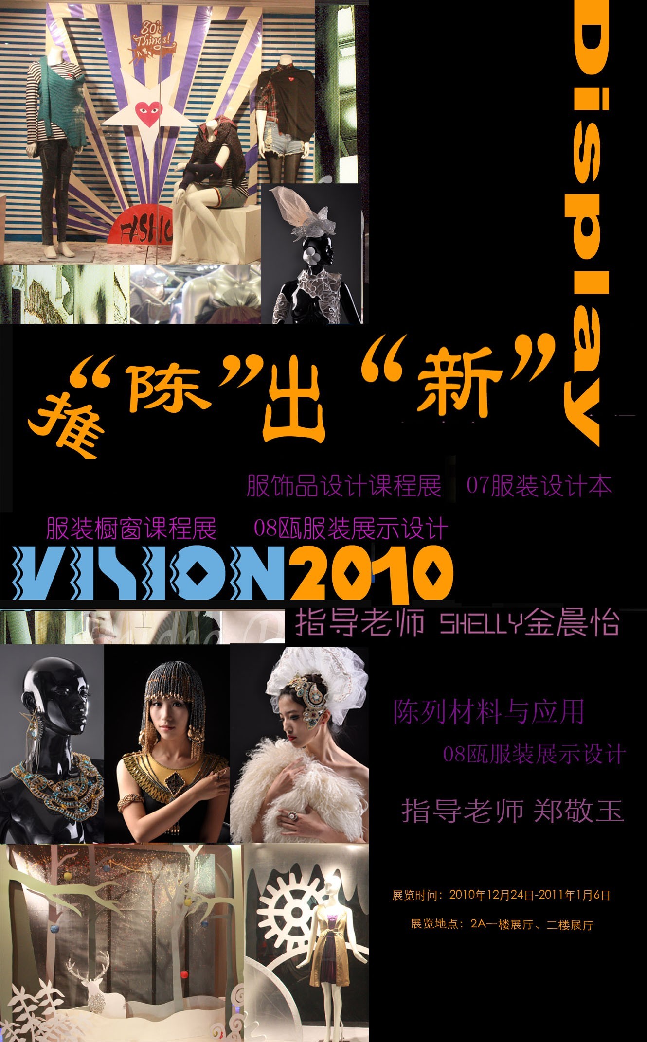 kaiyun开云官方网站于2010年10月24日-2011年1月6日在2A二楼展厅举行07服装设计班和08瓯展示设计班推“陈”出“新”课程作品联展。此次课程联展由金晨怡老师的《服装橱窗设计》,郑敬玉老师的《陈列材料与应用》以及金晨怡老师的《服饰品设计》课程组成。以2010的圣诞作为主题,课程运用艺术手法触动着美的感受,更是启发学生商业设计思维的根本。kaiyun开云官方网站党总支书记郑彩莲,kaiyun开云官方网站院长李运河、服装系副系主任张振岳、各学校科室以及来自其他院系的师生共一百余人参加了本次活动。 kaiyun开云官方网站院长李运河在观看展览时说:“这是续去年开始的创新争优活动的特色活动课程联展的又一次精彩的升华。学生作品题材丰富,在这些作品中也体现了老师教学方式的灵活多样,设计思想的无拘无束及同学们较强的动手能力。使开云官网展示设计专业方向在专业交流与实际应用方面上升到一个更高层面。”课程展本着“给学生创造展示自己的平台,加强实践环节的教学,激发学习兴趣”这一宗旨,在金晨怡老师和郑敬玉的精心指导下给大家带来一场视觉盛宴,也是同学对指导老师教学成果的一次汇报。推“陈”出“新”的意思是突破创新的设计理念,利用独有的陈列装饰和商品展示技巧,让商品在道具、辅助商品、装饰品及灯光的衬托下闪亮登场,从而使商品由呆板变得鲜活,将商品优势最大程度展示出来,达到促进产品销售、提升品牌形象的目的。也通过陈列展览这个平台来推销自己的设计作品。 推“陈”出“新”是学生对服装展示专业方向的激情与热爱,对课程的学习体验,也是学生们用心去打造的创新陈列视觉效果。通过作品展览既可强化学生的社会适应能力和实际动手能力,培养商业化的思考习惯与创新意识的体现;另一方面加强交流与展示学生风采,向社会推荐我们优秀的学生和作品,提高了社会影响力和就业率。 据了解,此次展览特色在于在教学上着重与市场的紧密结合。此次展览邀请了嫁依工坊设计总监胡亚迪,3W摄影董事兼设计总监王雁和市服装商会设计师专业委员会秘书长曾贵等来自企业的专家对学生作品进行点评。浙江婉甸服饰董事长蒋海、浙江飘蕾服饰董事长黄瑞东、浙江雪歌服饰公司董事长助理熊伟对作品给于了高度的评价。另一亮点是此次学生们的橱窗设计作品已经被时代购物广场童装区和银泰百货所运用,3W摄影董事兼设计总监王雁马上相中了学生徐晨大胆而富有时尚的“僵尸新娘”主题的橱窗。此次展览后导师带领学生与时代广场和3W摄影签订了横向课题,为他们定期设计制作橱窗。