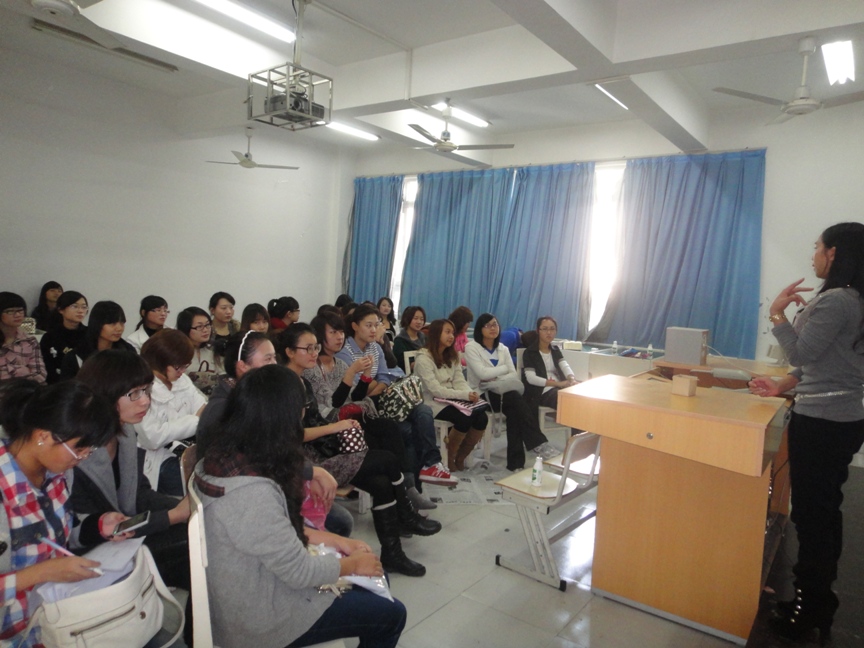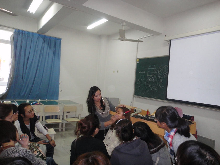2010年11月20日星期六14:00~16:00,在美院2B3001,雪思美容院院长、医学院WinGirl俱乐部指导老师朱来顺,为开云官网的化妆培训素质拓展班画上一个完美的句号。 此次培训是朱老师在本学期第四次给大家辅导。其热烈的掌声,阐释着大家对本次培训的渴求和对朱来顺老师的喜爱。朱老师说,化妆是艺术。她要求人们在化妆之前先了解自己今天穿了怎样的服装,代表着怎样的形象以及自己的性格;希望每个人能了解自己面部的优点和缺点各是什么。然后,她让同学来当模特,一步一步地教同学们怎么样打底、修眉、调肤色、画眼线、眼影、腮红和唇彩。而同学们也是热情高涨,积极提问,踊跃参与其中。在示范的过程中,她也再三强调该注意的地方。比如定妆时要用散粉,补妆时要用粉饼,刷子半年洗一次,而在平时,只要用散粉洗就可以了……示范结束后,她则让同学们自己亲手实践。 这次培训,不仅让爱美的女生体验到了化妆带给她们在外表上的飞跃,更是让她们学习到了化妆的真正技巧。