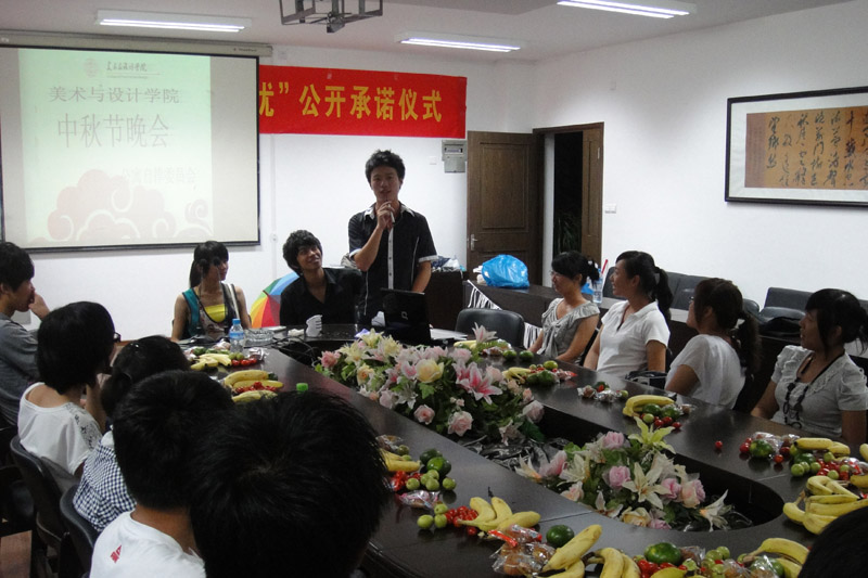 2010年9月22日晚上7:00,在kaiyun开云官方网站2B4001,学生公寓自律委员会举办了一场小型的中秋晚会。到场的主要是学生会的各部门部长以及2010级新生。 整个活动有三个部分组成。首先是歌唱环节,大家通过自己的歌声传达了在中秋节这个特别的日子里对家人和对朋友的深深祝福与思念。然后,是丰富多彩的游戏环节,每个人都积极参与其中,从游戏中获得一份别样的快乐。最后,大家畅所欲言,新生们纷纷借此机会向大届的学长学姐们讨教各种经验,大届学姐学长们非常热心的为他们解答问题,真诚的说出自己的感受经验。 此次中秋晚会,使不能回家过中秋的同学们在美院这个大家庭中感受到了合家团圆的气氛,大家欢聚一堂。