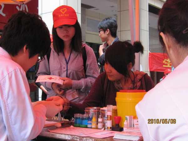 2010年5月9日,kaiyun开云官方网站“艺家人”青年志愿者协会联合温州医学院环境与公共卫生学院、温州职业技术学院及温州红十字会,在大学城商务中心开展了骨髓采样献血活动。活动现场,人群川流不息,献血车上排起了长长的队伍,同学们反应十分热烈。 早上7点多,志愿者们就已到达商务中心为今天的骨髓采样活动做准备。虽然天空下起了毛毛细雨,但志愿者们的积极性丝毫未受影响。8点半,随着红十字会献血车到达现场,活动正式开始。一位年轻小伙早早地等在活动现场,活动开始后便勇敢地献了血,成为今天献血的第一人,其精神可嘉。时间分分秒秒过去,献血的人越来越多,有在校学生,有商务中心工作人员,就连为献血者服务的志愿者们也受到感染,纷纷前去献血。在这些人当中,有很多都已经不是第一次献血了。他们的精神值得我们学习与赞扬,他们的态度值得我们尊敬与肯定。红十字会的医务人员们也十分辛苦得在岗位上忙碌着,连午饭都是匆匆忙忙解决的。下午5点多活动结束,而同学们的热情却始终不减。一些同学还询问是否有下次献血活动,这让我们十分感动。 这次活动让志愿者们体会到了爱心的温暖,也让他们在献血的过程中了解了献血知识。红十字会帐篷上的一句话让我们为之动容,“虽然我不认识你,但我谢谢你”。谢谢今天所有的献血者,谢谢你们的爱心!是你们的新鲜血液让许多受伤的人得到了救治,是你们给他们注入了新生的希望。感谢你们!在此为你们的无私奉献敬礼!