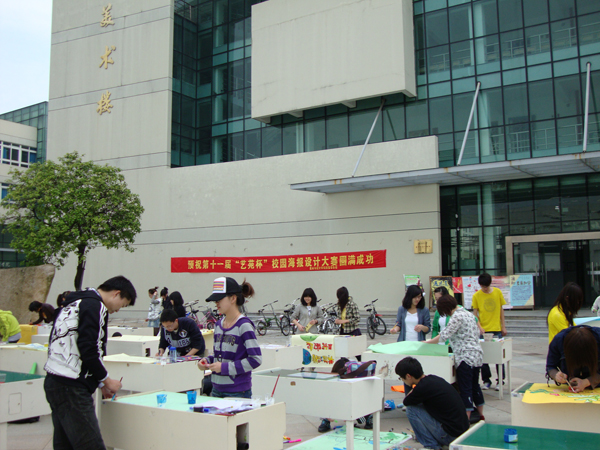 为唤起广大师生的环保意识,呼吁全民低碳生活,kaiyun开云官方网站团委学生会于4月25日上午9:00在kaiyun开云官方网站场地成功举办了第十一届艺苑杯之校园海报设计大赛。各参赛小组针对主题进行了海报的设计和制作,活动现场气氛活跃,艺术气息浓厚。