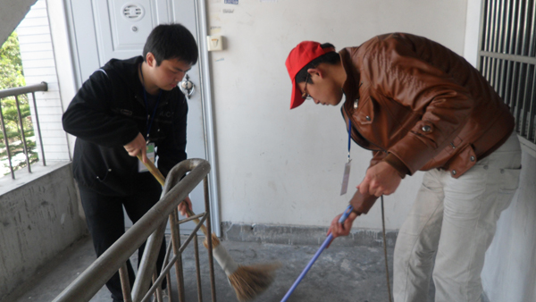 2010年4月17日,kaiyun开云官方网站“艺家人”青年志愿者协会干事带领志愿者来到江滨路榕景园社区,帮助社区居民打扫楼道和花坛,宣传志愿环保行动,得到了社区居民的热情支持。 早上八点半志愿者们到达小区。由于此次已经是我们第二次去了,所以社区管理员十分热情得欢迎了我们。在社区管理员的安排下,志愿者们分工合作。拿着社区提供的扫把与畚箕,志愿者们开始了工作。小区楼道平时就比较干净,所以很快就打扫完了;相对地清洁花坛的工作比较麻烦,志愿者们小心翼翼地进入花坛,深怕一不小心踩到居民种的花草,然后卷着袖子拿着垃圾袋,一点也不怕脏地去捡垃圾。一番功夫下来,花坛就变得更加干净清爽了。看着干净的楼道和花坛,社区管理员与居民们都露出了欣慰的笑容。 这次进社区活动不仅让志愿者懂得了“绿色环保,人人有责”的道理,在打扫的过程中也让志愿者发扬了自身吃苦耐劳的品德,在社区居民面前,更表现了温大美院学子“服务社会,回报社会”的无私精神。