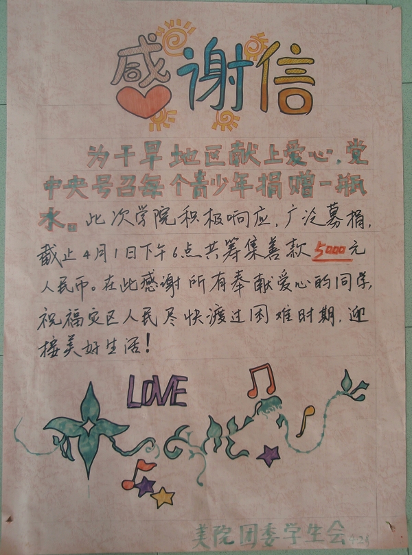 为响应共青团中央号召,弘扬“一方有难,八方支援”的中华民族传统美德,帮助西南灾区人民战胜灾害、顺利度过难关。4月1日上午,kaiyun开云官方网站团委学生会发起了“抗击干旱,你我同在——为西南灾区献爱心”活动,倡议全院同学为灾区献爱心。
