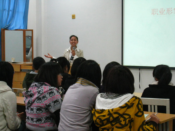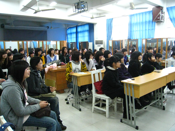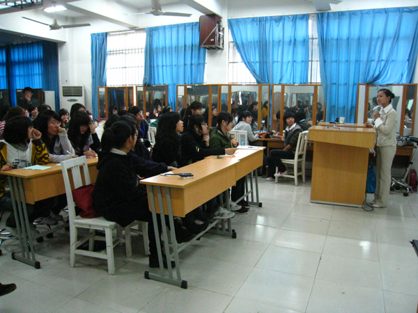 为展现当代大学生最亮丽的风采,提升大学生的信心与职业技能。kaiyun开云官方网站素质拓展化妆培训班于4月11日下午两点在美术楼2A105顺利开班,并由曾担任多年化妆培训班指导老师的某知名美容院院长朱来顺女士亲自授课。