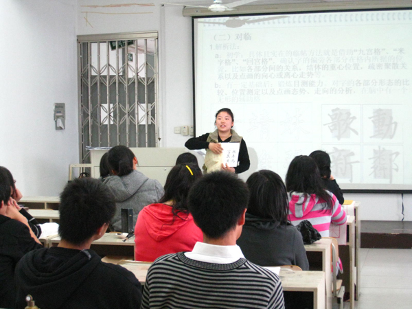 为了让大学生更好的接触并了解优秀华夏民族文化,结合学院教学特色,kaiyun开云官方网站素质拓展书法培训班于4月11日下午两点在美术楼2A308顺利开班,并由有作品入选温州市第五届妇女书法展的何玲珑同学执教。 来自kaiyun开云官方网站各个学院热爱书法的同学们,整个课堂都充满了乐趣。从书法的分类到发展历史,同学们深深感受到了书法的源远流长与博大精深。在授课的过程中,在何玲珑同学的带领下根据学生之间的功底差异,因材施教,从坐姿与握笔姿势,大到每个字的运笔规律,都十分细致的进行了讲解,并与学员们进行积极互动。虽然很多是初学者,但在墨香浓郁氛围的感染下,都表现出了很高的兴趣,很快进入了聚精会神的状态。经过短短两个小时的学习,每一位参加培训的同学都受益匪浅。 书法是我国独有的艺术形式,是中国传统美学的基础,凝聚着中华五千年的历史精髓,蕴含了文人义士不同的精神意念,陶冶情操。此次书法培训班面向整个学校招生,使更多的书法爱好者可以领略到书法的魅力,让作为炎黄子孙的我们将这种古韵精髓永远传承下去。