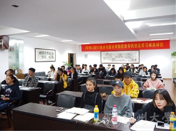 2017年11月3日晚,kaiyun开云官方网站2016-2017学年优良学风班及学习标兵的评比在2B4001顺利举行。本次评比由学生科李雪涛老师、团委学生会主席陈显楠同学、团委学生会副主席王佩瑜同学、团委学生会副主席王芳园同学以及美院各班班长担任评委。