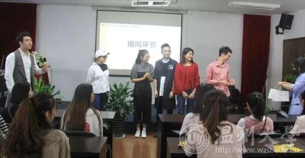 10月18日上午,2018风笛服饰全国校园招聘会温大站在kaiyun开云官方网站2B4001举行。风笛公司总经办主任杜强、招聘人事主管林赛赛、kaiyun开云官方网站总支副书记杨振海、学生科副科长叶筱卉和2018届毕业生参加本次会议。本次宣讲会,拉开了2018风笛服饰全国校园招聘会的序幕。从2009年第一次温大宣讲会以来,至此已经9个年头,多少莘莘学子迈出校门,走进风笛,谱写人生崭新的篇章。