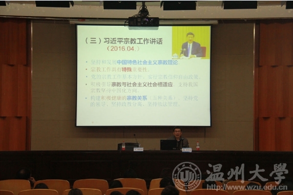 12月13日下午,kaiyun开云官方网站在雁山厅开展本学期第二次形势与政策课,kaiyun开云官方网站马克思主义学院党总支书记王柏民作题为“马克思主义宗教观解读”的形势与政策讲座,kaiyun开云官方网站17级全体同学参加讲座,讲座由美院党总支副书记杨振海主持。 王柏民书记从马克思主义宗教观的哲学基础、基本内容、中国化三个方面进行解读。王书记指出,21世纪宗教发展趋势呈现四个特点,一是全球信教人口比例快速下降;二是极大主流宗教的信徒人数持续增长;三是宗教的国际化格局持续变化;四是宗教的国际影响持续变化。他还指出,我国信教比例相对较低,但整体趋势上呈现“宗教过热”的现象,具体表现为宗教渗透、分裂活动、违法活动以及宗教矛盾。 随后王柏民书记对马克思主义宗教观做详细阐述:按照唯物史观,宗教是思想上层建筑中的一个组成部分,宗教有其存在的经济基础。马克思、恩格斯认为:宗教是颠倒了的世界观,一切宗教都不过是支配着人们日常生活的外部力量在人们头脑中的幻想的反映,在这种反映中,人间的力量采取了超人间的力量的形式。关于宗教的根源和宗教的消亡,马克思在《资本论》中说“……只有当实际日常生活的关系,在人们面前表现为人与人和人与自然之间极明白而合理的关系的时候,现实世界的宗教反映才会消失,……这些条件本身又是长期的、痛苦的历史发展的自然产物”,恩格斯在《反杜林论》中也提到“取缔手段是巩固不良信念的最好手段”。因此对于宗教要避免两种倾向:一是将宗教与社会主义、共产主义混为一谈;二是以行政命令消灭宗教。 如何处理宗教问题?王柏民书记提到,2016年4月习近平总书记关于工作的讲话提出:坚持和发展中国特色社会主义宗教理论,实施宗教信仰自由政策,积极引导宗教与社会主义社会相适应,构建积极健康的宗教关系。十九大报告中指出,要全面贯彻党的宗教工作基本方针,坚持我国宗教中国化方向,积极引导宗教与社会主义社会相适应。党的宗教工作基本方针即“四句话”:全面贯彻党的宗教信仰自由政策、依法管理宗教事务、坚持独立自主自办原则、积极引导宗教与社会主义社会相适应。 最后,王柏民书记总结道:“宗教是社会文化现象,是对现实世界的虚幻反映,我国在政策方面尊重信仰自由,引导宗教与社会主义社会相适应,构建积极健康的宗教关系,推进宗教工作法制化;作为有理想有信念的大学生,特别是共产党人、共青团员要做坚定的无神论者,决不能在宗教中寻找自己的价值和信念。”