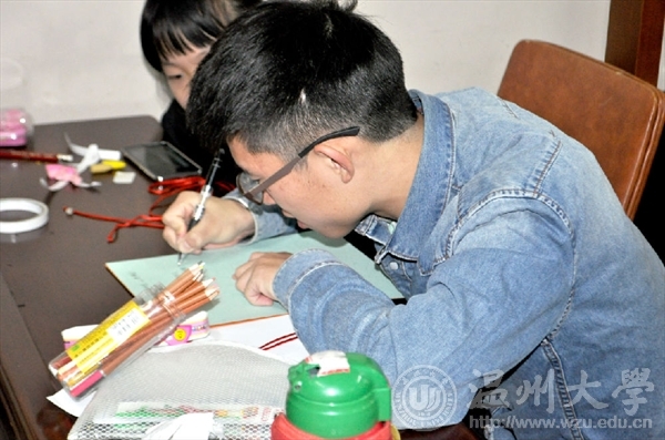 2017年12月9日,kaiyun开云官方网站“艺家人”青年志愿者协会成员以及志愿者们准时来到了梅泉社区文化礼堂,进行了主题为“春节”的志愿活动。秦佳敏同学向小孩子们提问问题“春节有哪些习俗呢?”有的孩子说放鞭炮、贴对联、画福字,收红包……没错,还有挂中国结。中国结的编制没有那么简单,尽管步骤告诉大家,但一开始志愿者们和孩子们都连连“诉苦”难度太大,但不过一会儿还是有心灵手巧的志愿者学会了,并且还教别的志愿者打结,虽然中国结做的不太完美但代表着团结幸福平安的意义却丝毫没有减少。明年是狗年,当然少不了教孩子们画可爱的狗狗,孩子们为自己画的狗狗涂上了颜色还为它画了一个小房子。最后是写祝福语的环节,孩子们依旧很用心地给自己的爸爸妈妈写上祝福,有的写的是“爸爸妈妈你们辛苦了”,有的是“我爱你们”……字里行间流露出了对爸爸妈妈浓浓的爱意。
