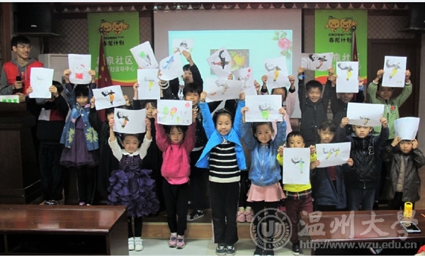 2017年11月18日,温大kaiyun开云官方网站“艺家人”青年志愿者协会如期来到了梅泉社区文化礼堂进行了以“感恩”为主题的志愿活动。伴着微凉的风志愿者们又来到了熟悉的地方,开始了新的支教之旅。首先负责人陈南同学给小朋友们放了一段九分钟的亲情公益广告,志愿者和小朋友们都安安静静地看着大屏幕,脸上的表情也随着广告的剧情发展而变化,时而皱眉头,时而微笑。随后陈南同学根据公益广告中所涉及的人物开始组织大家画功夫熊猫。白白的绒毛肚子,夸张的高抬腿动作,橙色的趣味裤衩,大家画的津津有味。紧接着是评奖环节,小朋友们争先恐后地上讲台展示自己的作品,画的出色的十个小朋友得到了一根精美的糖果和有趣的红外线笔,没得到奖品的小朋友们也没有灰心,继续等待着下一轮的评奖机会。最后一个环节是手工活动——做花藤。这是做贺卡很重要的一部分,用来装饰。志愿者先剪下一条蛇状绿色纸条做藤蔓,再由小朋友们在彩色卡纸上画上花片,大家一起分工合作,其乐融融。花片卷成花瓣,粘在藤蔓上,很漂亮。陈南同学说,这都是用来粘在贺卡上的装饰,也可以粘在房间里,而做好的贺卡可以送给爸妈、老师来感恩他们的培育,也可以送给朋友感谢一直陪伴。活动期间,恰巧有教育局的领导来梅泉采访,比往常更热闹一些,同时领导也对我们梅泉志愿者认真负责的态度连连称赞,并表示希望梅泉支教能够越办越好!通过本次活动,小朋友们不仅锻炼了动手操作能力,而且让小朋友们更加了解感恩是什么,知道要对父母感恩,要对朋友感恩,要对帮助过自己的人感恩。只要人人将自己所怀有的一颗感恩的心,变成实际行动的感恩时,这个社会将会多一分温暖,将会多一缕阳光的存在,将会多一点芬芳,同时也希望志愿者们和小朋友们常常怀有感恩的心去对待所遇到的人和事,你们的这份感恩的心将给予别人更多温暖。图/文:金 哲罗会慧董 悦