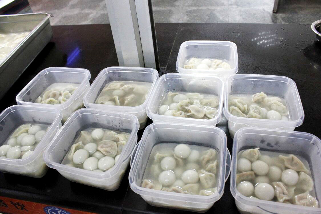 冬至那一天南北方会有不同的习俗,北方大部分地区会吃饺子、南方则会吃汤圆,汤圆代表团团圆圆,那关于冬至吃饺子的说法有很多,得到普遍认同的有两个,其一为纪念“医圣”张仲景“祛寒娇耳汤”之恩,至今南阳仍有“冬至不端饺子碗,冻掉耳朵没人管”的民谣。中午十一点半,志愿者们准时在E区食堂集合,等待着汤圆和水饺出锅,再由志愿者们将汤圆和水饺均匀的分到不同的盒子中,打包好后由两位负责人分别带领志愿者们兵分两路为大学城的保安叔叔以及公交车管理员阿姨们送去了一份不一样的温暖,一份汤圆,一份饺子,看似简简单单的举动却有着满满的感动。在一声声道谢中,志愿者们也体会到了冬季不一样的温暖。