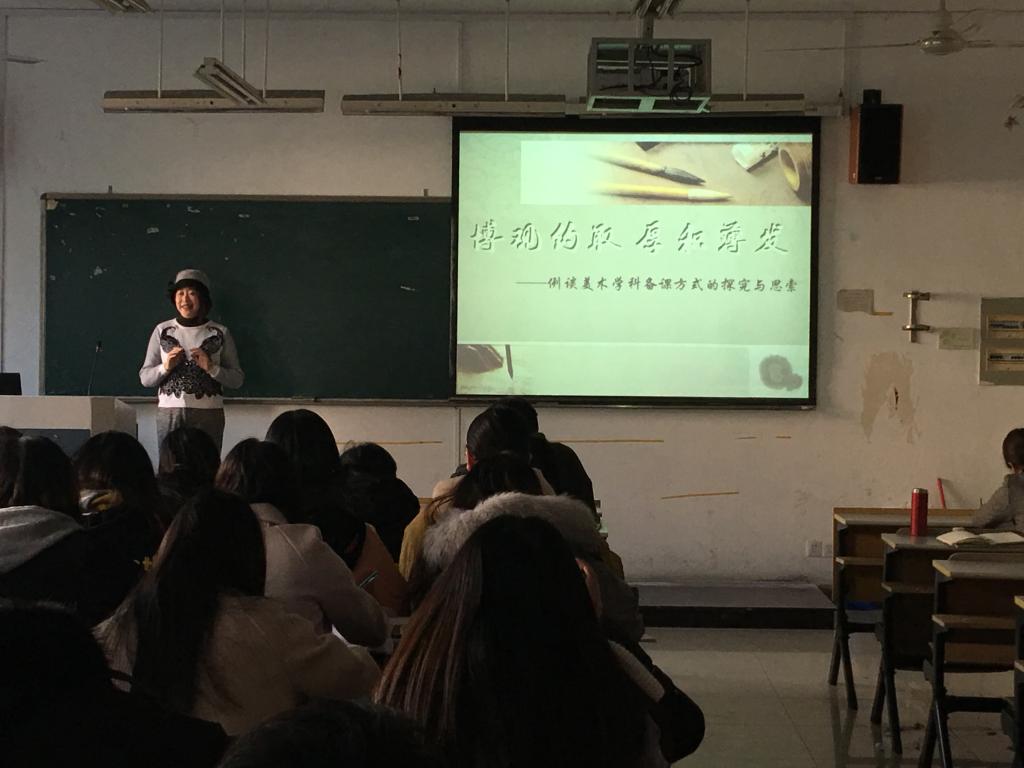 2018 年1 月11 日上午8:30在kaiyun开云官方网站3B204教室,温州市鹿城区名师金鸥老师为kaiyun开云官方网站的师范生和研究生作了以“如何深入的钻研教材”为主题的课堂研讨。kaiyun开云官方网站胡建南老师主持了活动。 本次研讨给同学们带来极大震撼,使同学们认识到深入的钻研教材的重要性。首先,金瓯老师围绕如何深入的钻研教材,通过引案例、与同学间的互动、点评并结合自身经历为同学们分析了上好一节美术课的前提,用幽默风趣的语言向同学们提出了相应的的解决方法,提出了备课前三步走的工作思路和具体的备课过程。整个教室不时发出清脆动听的笑声,同学们在轻松的氛围中认识到深入钻研教材的重要性。她还对同学们提出了深入钻研教材备课的建议,对同学们寄予了殷切的期望,同学们以热烈的掌声欢送金鸥老师离场。 最后,胡建南老师做了总结性发言,本次活动取得圆满成功。