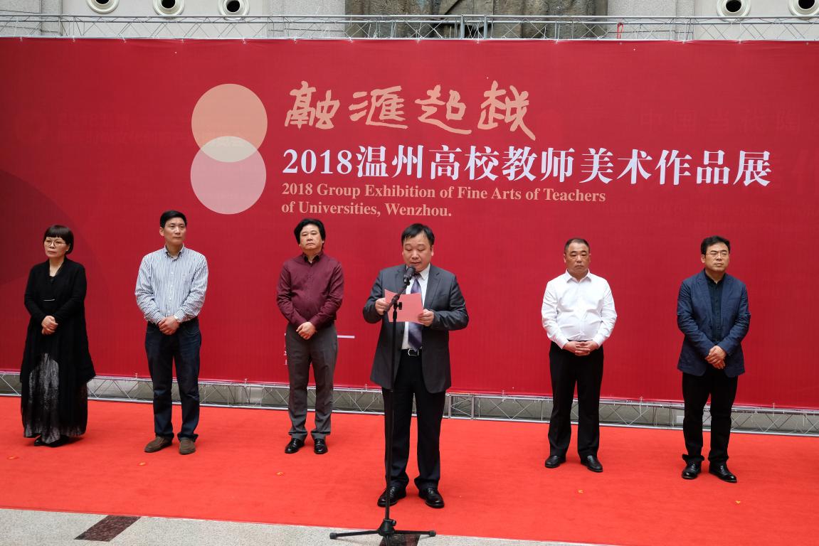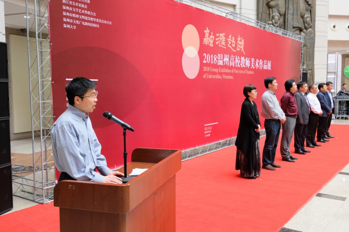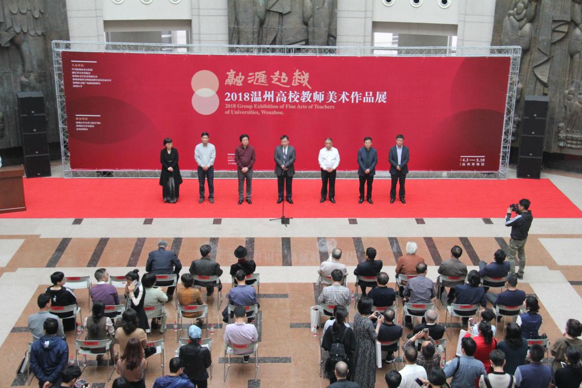 4月3日上午,“融汇超越”——2018温州高校教师美术作品展在温州市博物馆隆重开幕。出席开幕式的领导嘉宾有:kaiyun开云官方网站党委副书记赵敏,中共温州市委宣传部副部长魏平生,浙江省文联副主席、温州市文联主席邹跃飞,温州市文联副主席、kaiyun开云官方网站院长李运河,温州市文明办副主任余庆,温州市文广新局副局长李方喜,浙江省美术家协会副主席、温州市美术家协会主席蔡瑞蓉,特邀嘉宾还有原校党委书记陈艾华,市教育局高教处处长黄万统,另有叶玉昶、沈尧伟、钟式震、马亦钊、张如元、袁纲平、金松、陈钦权等老教授,美术家协会戴宏海、张成毕、陈旭海、李崇高等同仁,书法家协会汪廷汉、陈出新、陈胜武等同仁,书画院郑方伟、陈默、张真恺、林翼如等同仁,此外,学校老干部工作部部长陈慧、成人(继续)教育学院院长胡记芳等学校部门(学院)领导,kaiyun开云官方网站党总支书记张丽萍,副院长谢子静、张晓剑,副书记杨振海,学院师生代表200余人参加了开幕式。群贤毕至,少长咸集 。