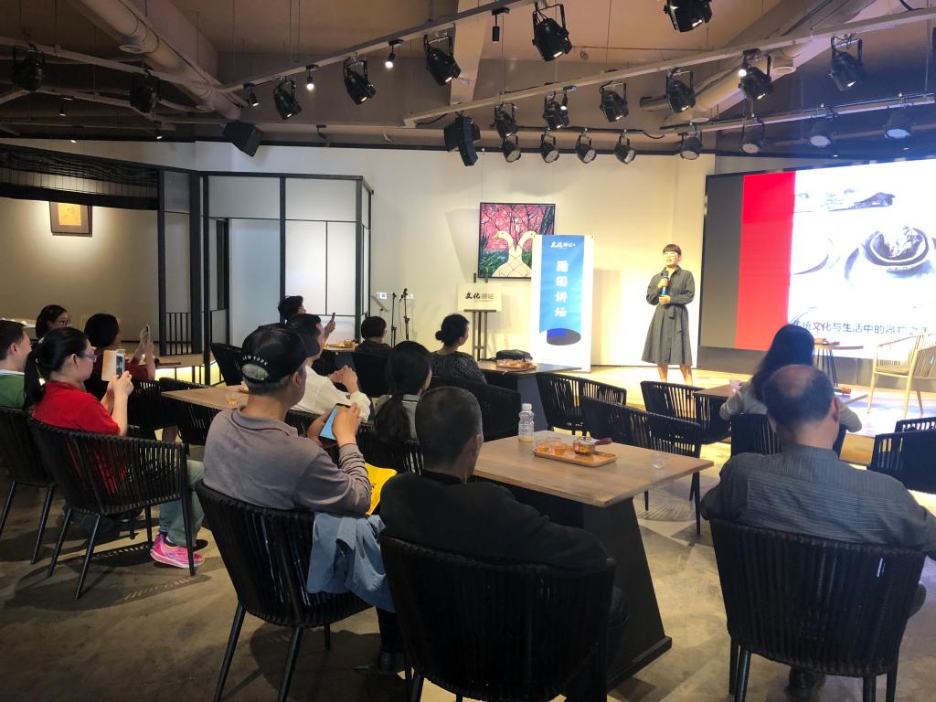 “器物精神”说到底也就是一种人文精神。法国人丹纳在《艺术哲学》中称:文化是“自然界的结构留在民族精神上的印记”。大中华风雅的生活方式,集中表现了中国人精致的人生态度和“器物精神”。其实,每一件器物背后都有一片精神领地,它不仅是物质化的呈现,其中还有创造和对人生品质的不懈追求,在人与器物、人与人之间达成更多的相互敬仰、尊敬和爱戴,让生活变得更美而充满希望。现场老师通过我们日常的茶皿食器、家中的装饰物件从材质、器物形态、纹饰样貌等几个方面分析了从古至今我们日常生活用到的器物都是以怎样的意识形成,又是以怎样的形态寓意去传承下来的。日用器物的“形制“、“礼制”不是以量取胜,而是能够灵活运用和体会现有物品的智慧,从中感受到快乐。这是一种价值观。而这种价值观正是通过日常生活的经验和思考所产生的审美意识和情感,去感受眼睛看不到的那部分,这也许是随着年龄增长才能够明白的道理吧。