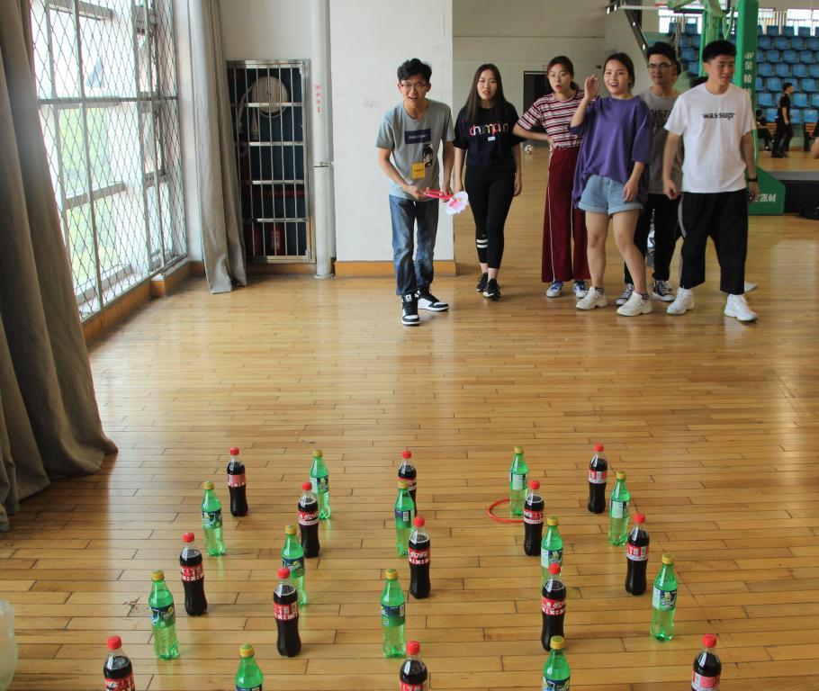 在活动开始前,团学指导老师李雪涛为大家致了简短的开幕词,主要是让同学们了解举办这次活动的目的与意义。随后比赛正式开始。此次趣味运动会的比赛项目有“平板支撑”“龟兔赛跑”“履带战车”“鼓舞人心”五个团体项目,以及“足球小将”“套圈达人”“百发百中”“踢毽子”“吹乒乓球”五个单人项目。比赛还未开始,选手们就个个摩拳擦掌,跃跃欲试。项目分批进行,在比赛过程中,各队队员都表现得相当活跃,他们相互合作,互帮互助。各队都严格遵守比赛规则,气氛热烈。每个项目都在工作人员的指引下顺利进行。虽然天气比较热,阳光照得人直流汗,但是不论是工作人员还是队各员都积极的参与了比赛,整个场地都充满了欢声笑语。