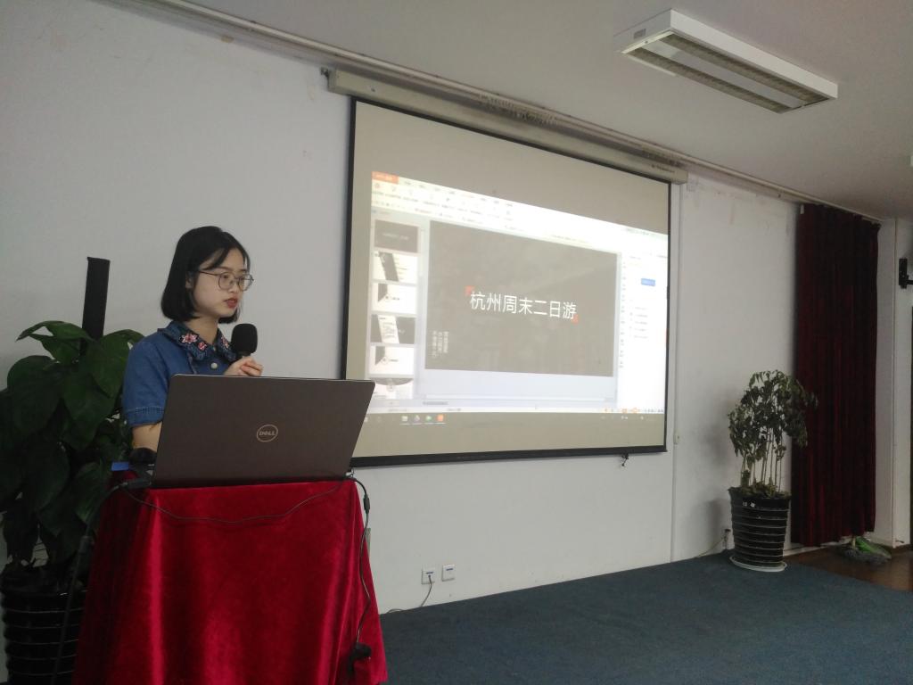 选手们以ppt演讲的形式将自己的旅行计划和大家分享,利用大学生活里一个短暂的周末或假期,给自己一个出去走一走的机会,丰富自己的大学生活。也有选手利用这次机会,介绍自己家乡的特色景点或者自己走过看过的地方,为大家提供方便快捷的路线,舒适合算的住宿,以及当地好评的美食,给大家的旅行计划增添了新的目的地。一页页精致的ppt,以及演讲时展露出对向往旅游时的笑容和期待,都看出了选手们旅行计划和攻略都经过了沉谋重虑。从温州“天下第一江”美誉的楠溪江到义乌的小商品的海洋,到有现代气息和历史文化底蕴兼具的宁波,还有“欲把西湖比西子,淡妆浓抹总相宜”的杭州西湖,以及金沙连绵,碧浪荡漾的舟山群岛……当然还有走过路过不容错过的各地美食。让台下的同学们都迫不及待想去体验。