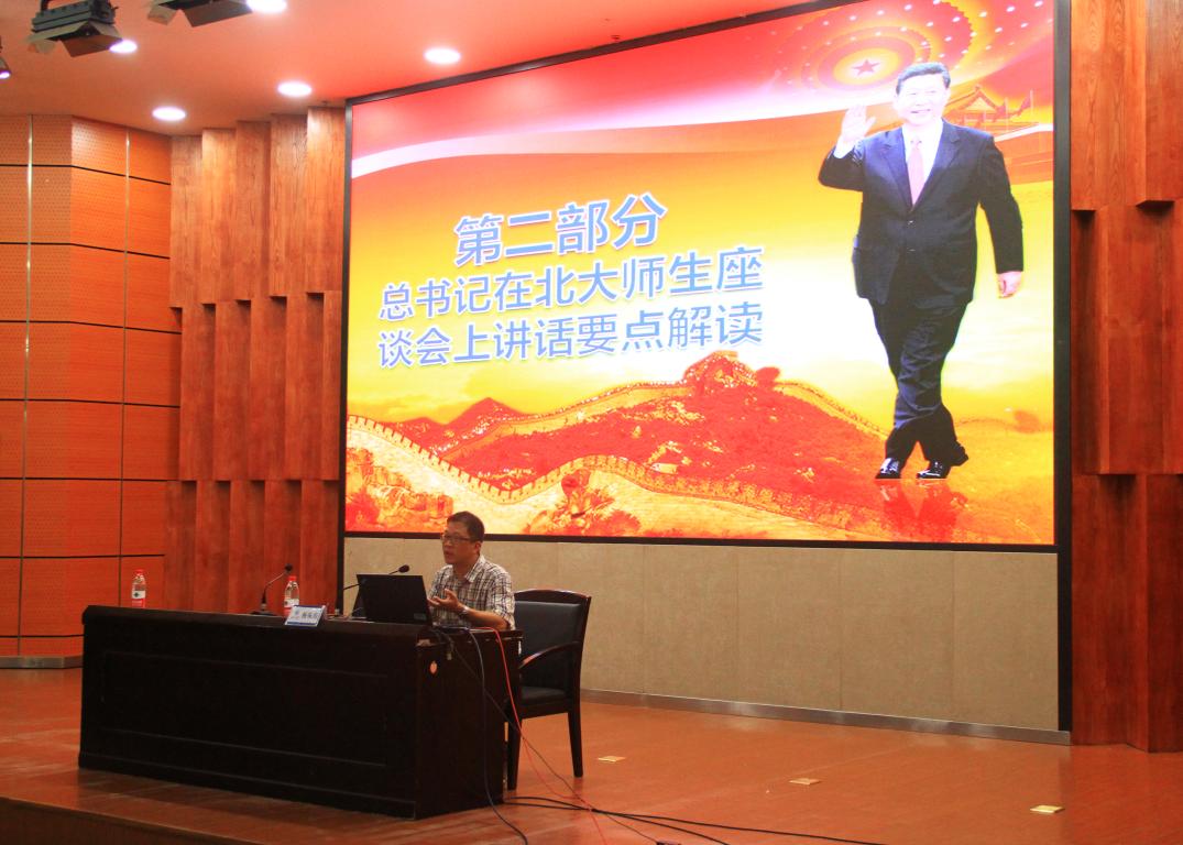 7月4日下午,kaiyun开云官方网站在岩松堂雁山厅组织开展形势与政策课教学,学院党总支副书记杨振海为17级全体同学做“坚持立德树人培养时代青年 加快内涵发展建设高教强国——习近平总书记在北大师生座谈会上的讲话精神解读”报告。 杨书记报告分为三部分,第一部分是总书记莅临北京大学考察的简要回顾,第二部分是总书记在北大师生座谈会上讲话的要点解读,第三部分是学习总书记讲话精神要自觉增强五个自觉。杨书记指出,习近平总书记在北大师生座谈会上的讲话是当的十九大以来,总书记面向高等教育乃至整个教育战线发表的首次重要讲话,对新时代的高等教育工作做出了系统论述,具有很强的战略性、政治性、思想性和针对性,是习近平新时代中国特色社会主义思想的重要内容,是深化教育综合改革、办好社会主义大学的根本遵循,也是青年学生成长成才的行动指南。杨书记认为,总书记的讲话围绕“我们要培养什么样的人”“怎样培养我们需要的人”“青少年怎样成为这样的人”三个问题,分别从我国高等教育的一个根本任务、建设中国特色世界一流大学的三项基础性工作和对新时代青年的四点希望三个方面进行了深刻阐述。杨书记总结了学习总书记讲话精神要增强五个自觉,一要增强走中国特色社会主义道路的自觉;二要增强加快高等教育内涵式发展的自觉;三要增强高等教育服务国家和社会的自觉;四要增强高校加强和改进党的领导的自觉;五要增强青年大学生全面成长成才的自觉。 最后,杨书记勉励全体同学要不忘初心,牢记使命,关注时事政治,努力充实文化知识和专业技能,为实现中华民族伟大复兴的中国梦贡献青年大学生应有的力量。