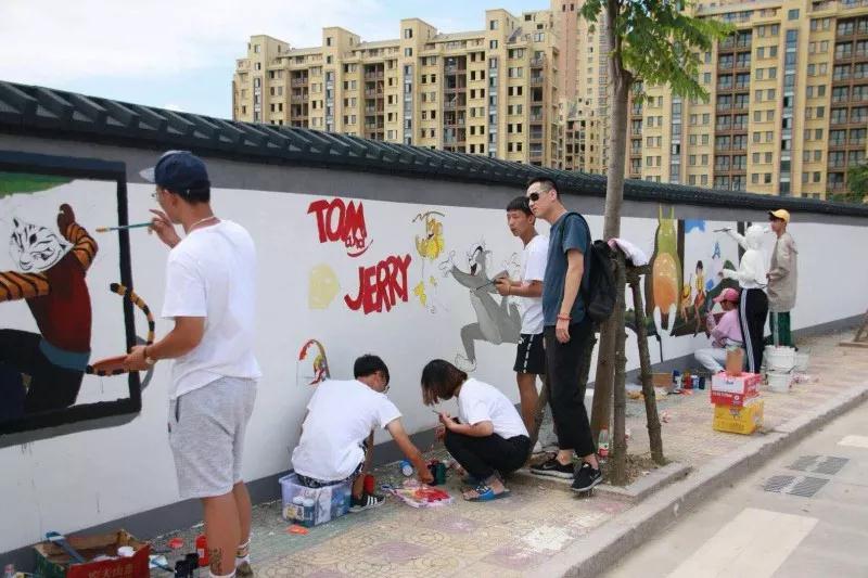 下午,实践队全体队员于准时集合,继续绘画工作。在领导慰问过后,大家的活动积极性明显高涨。通过实践队员的一致努力,墙绘的效果基本成型,引来不少市民驻足观看。我们的暑期社会实践仍在如火如荼地进行着,愿实践结束时,大家都能在辛劳中收获喜悦的果实。在接下来的半个多月时间里,这些同学们还将深入城东街道云岭村等农村,结合新农村建设,开展以精神文明为主题的彩绘创作,助力文明城市建设。