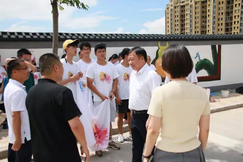 2018年7月19日上午,kaiyun开云官方网站党委副书记赵敏、团委书记屠霁霞、团委副书记丁强以及溯初学区党委书记陈宏毅等老师在乐清市文联副主席洪蛮、团市委学少部副部长郑亦蒂、城东街道宣传部主任陈力等人的陪同下,前往乐清市中心幼儿园晨曦园区,慰问kaiyun开云官方网站“艺绘”大学生暑期社会实践队。 暑期社会实践活动,是大学生深入社会基层,将理论付诸实践的一次重大活动。本着“受教育、长才干、做贡献”的宗旨,美院“艺绘”实践队通过墙绘美化社会环境,为乐清市城东街道打造美丽街道助力。 下午,实践队全体队员于准时集合,继续绘画工作。在领导慰问过后,大家的活动积极性明显高涨。通过实践队员的一致努力,墙绘的效果基本成型,引来不少市民驻足观看。我们的暑期社会实践仍在如火如荼地进行着,愿实践结束时,大家都能在辛劳中收获喜悦的果实。在接下来的半个多月时间里,这些同学们还将深入城东街道云岭村等农村,结合新农村建设,开展以精神文明为主题的彩绘创作,助力文明城市建设。