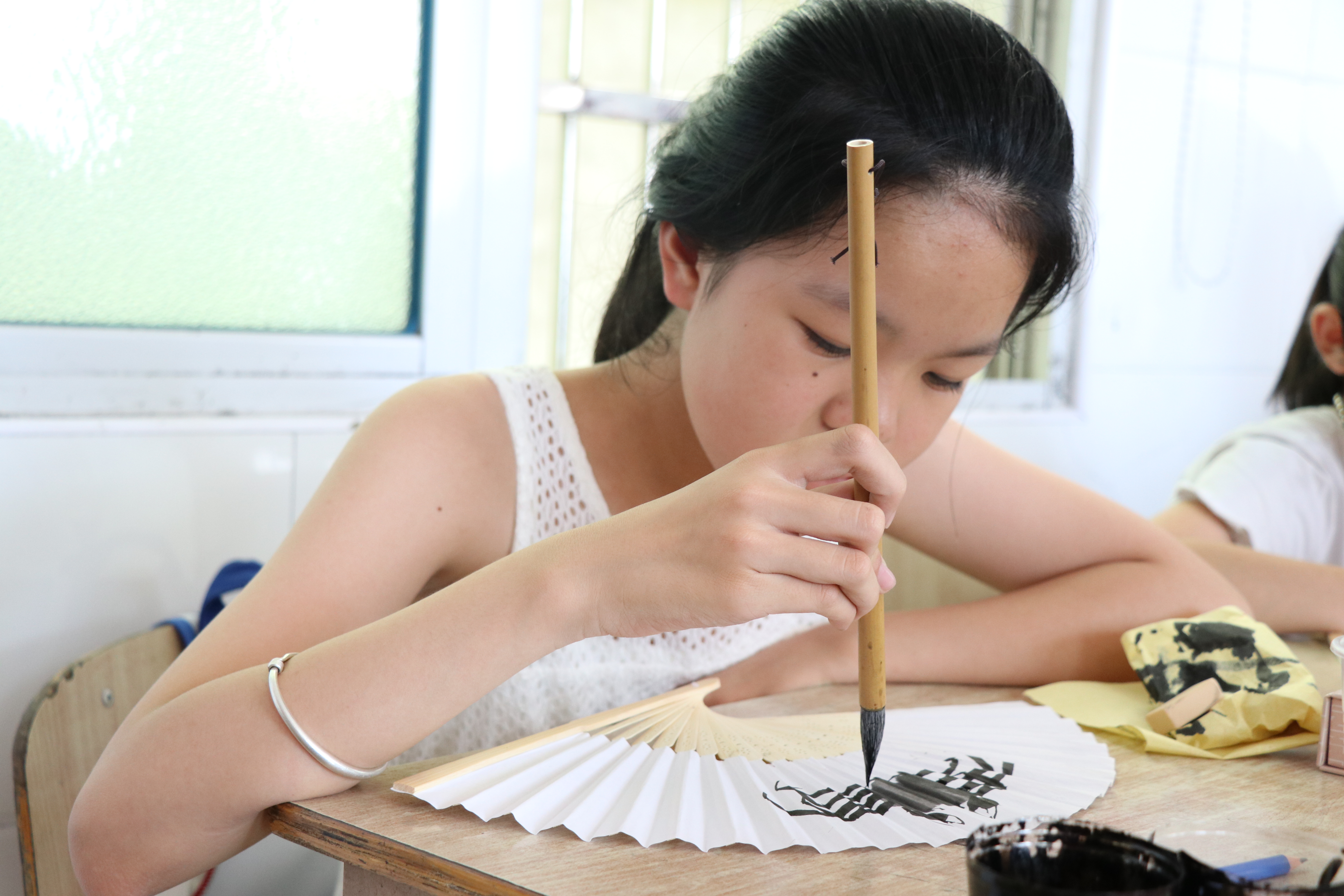 早上第一节课是朗诵课,绘暖向南实践队里正好有三位队员是来自于kaiyun开云官方网站校院主持队。孩子们都是很优秀的可塑之才,在经过短短的讲解示范教学后,便已经读得有模有样了。我们请了好几位小朋友起来朗读,他们也配合积极,毫不吝啬地展现着自己。朗诵课后是书法课,由于孩子们年级段不同,所以特意安排了软笔书法与硬笔书法。低年级段孩子学硬笔书法,高年级段孩子学软笔书法。孩子们纷纷表示这是他们第一次尝试书法。我们告诉他们何事都有第一次,要勇于尝试。而他们的第一次书法也完成非常不错。从姿势到写字,都有模有样。而今日下午的扇上绘画是今日的重头戏,第一次的集体大活动,我们再一次把高低年级的小孩子聚集在一个教室里,像第一天他们刚来这里的时候一样,只是与第一天的不一样的是,孩子们和我们变得越来越熟悉了,脸上的笑容愈加灿烂。我们为他们准备好了扇子与画笔,让孩子们发挥想象在扇上绘画,孩子们一开始都不知道该如何下手,但是在最后他们给了我们大大的惊喜,每个人都在纸上表达了自己的奇思妙想,孩子们纯真的天马行空,绘画不失为一种完美的表达方式,这也启发了已经步入大学的我们。有时候天真无邪确实是弥足珍贵的。孩子们眼里的世界是五彩斑斓的,是一切皆有可能的。所以说保持初心是多么的重要。在这样的思考中,我们结束了今日的所有活动。