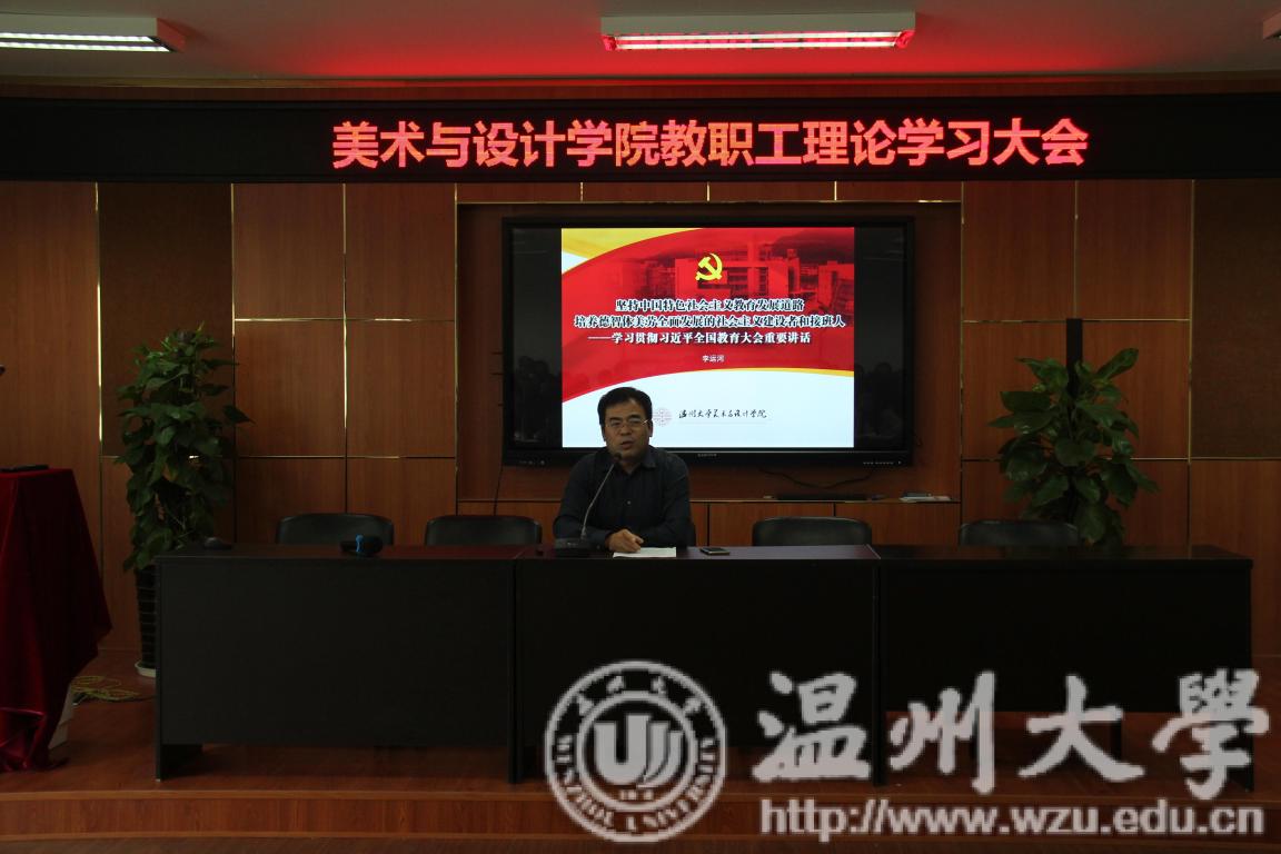 10月17日下午,kaiyun开云官方网站在2B4001召开教职理论学习大会。学院领导班子成员,党总支委员,各支部书记、系(科)主任及全体教职工参加了学习会。会议由学院党总支书记张丽萍主持。 院长讲党课:坚定办学方向 创新理念思想 李运河院长传达学习习近平总书记全国教育大会重要讲话精神。李院长指出:“习近平总书记的讲话强调教育是功在当代利在千秋的德政工程,是国之大计、党之大计;教育的根本问题是‘培养什么人,怎样培养人,为谁培养人’;我们要坚持中国特色社会主义发展道路,立足基本国情,坚持改革创新,培养德智体美劳全面发展的社会主义建设者和接班人。”李院长认为,习近平总书记关于“培养什么人”的论述,有两个关键词:“德智体美劳”和“建设者和接班人”。纵观历史,每个国家都是按照自己的政治要求来培养人的,我们一是要坚定社会主义办学方向,为党为社会主义培养人;二要有新理念,新思想,新办法,面对新环境,新对象,要坚持改革创新,在坚定理想信念、厚植安国主义情怀、加强品德修养、增长知识见识、培养奋斗精神、增强综合素质等六个方面下功夫,办人民满意的教育。 “课程思政”专题讲座:充分理解内涵 有效把握实施策略 教师教育学院副院长彭小明教授做《“课程思政”的内涵与实施策略》辅导讲座。如何将“课程思政”融入专业教学?首先要弄清“课程思政”的内涵,其次要明白为什么提倡“课程思政”,最后要掌握“课程思政”的是实施策略。彭小明教授对这三个问题进行了系统的讲解,让全体教职工受益匪浅。课程思政顾名思义就是在(通识、专业)课程中渗透政治思想教育,广义地说是指在课堂教学中对学生进行整治思想、道德品质和人格个性等方面的教育。新时期我们高校的德育工作提倡“课程思政”,是因为“全课程、全方位、全过程、全员育人理念”没有完全树立起来。“课程思政”的实施策略首先要加强师德师风建设,教师要以德立身,以德立学,以德施教,做学生锤炼品格的引路人,做学生学习知识的引路人,做学生创新思维的引路人,做学生奉献祖国的引路。在实施方法上,要采用言传身教、活动体验、社会实践等多种形式,有意识、主动地融入核社会主义心价值观及中华优秀传统文化。 经验交流:潜移默化 任何课程都是思政教育的途径 经验交流环节由张晓剑、尹乃军、王业宏三位老师做课程思政经验分享。张晓剑老师以《中国美术史》的教学为例,课程的内容涉及到中国传统文化中的礼仪、节日、民俗活动,首先要把专业最核心的要点贯穿到位,感染学生,其次要对授课内容进行延展,讲述中国古代的社会政治、经济、文化和艺术成就,通过中西方文化的客观比较,既培养学生的批判思维,也能自然地展现中华文化的独有魅力。尹乃军老师介绍了艺术考察过程中的思政教育经验,从强化纪律、安全,遵守当地少数民族风俗以及博物馆考察等内容,了解我国各民族文化的博大精深,陶冶学生情操,培养爱国情怀。王业宏老师从课程设计方面对如何融入思政内容进行了交流,从思路、方法到成果、思考,关键在于树立正确的专业史观和价值观。最后,徐慧娟老师对出国访学课程教学和科研经验进行了分享。 本次教职工理论学习大会对教育的价值和功能,对全教会精神的学习和领悟做了很好的传达和探讨,作为二级学院培养什么人、如何培养人进一步指明了方向。同时,对课程思政的内涵以及实施策略进行了系统的讲解,对如何将思政教育融入课程给老师们很大的启发,为学院今后推进课程思政工作指明了有效途径。