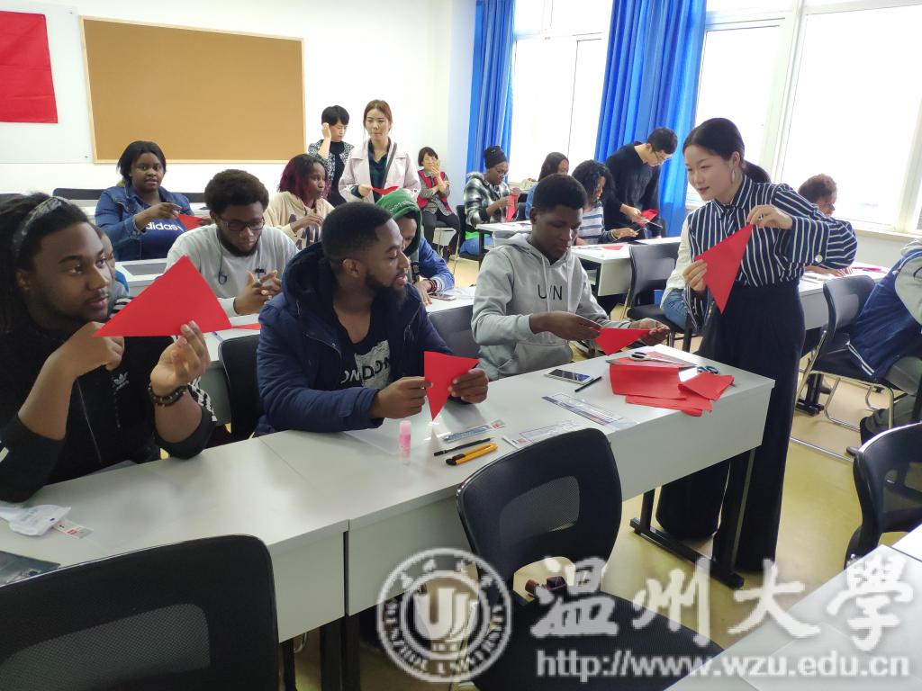 为了传承并发扬中国传统文化,丰富留学生校园文化生活,2018年10月22日下午,kaiyun开云官方网站结合自身特色,与kaiyun开云官方网站商学院合作,一同在北校国际楼开展了以中外剪纸文化交流为主题的活动。出席本次活动的领导有kaiyun开云官方网站党总支副书记杨振海、商学院党总支副书记刘开练、商学院国际部主任王洪斌以及商学院教师吴海蓉。 活动的开始,商学院的吴老师首先向留学生们介绍了本次活动的目的与意义,介绍前来开展活动的美院研究生代表们,同时也对在场的留学生们的积极性表示了充分肯定,尤其是第一次参与学院举办的课外活动的18级新生。老师提到,希望同学们能够好好表现,争取在此次剪纸活动中有所收获,了解剪纸艺术。 此次,带领留学生们剪纸活动由kaiyun开云官方网站研究生党支部主教。美院研究生代表徐苗苗为大家讲解了中华剪纸文化的历史内涵,介绍了剪纸中“福”和“寿”的具体意义,以及藏在火红的剪纸图画背后的中国老百姓们对生活的美好向往。生动的解说让留学生们沉迷其中,同时留学生们也忍不住赞叹中国传统文化的博大精深。接下来是动手环节,留学生们在美院研究生的带领和指导下,按剪纸的基础步骤一步步进行,每个人还积极思考,发散思维,加上了自己对剪纸的理解,进行了图案的设计与创作。留学生们完成了一幅幅形象生动的剪纸作品,同时也提高了动手能力,初步学习了中国传统艺术之剪纸。 活动的最后,美院研究生代表选出了留学生剪纸作品的一二三等奖,美院的研究生和留学生一同在领导老师带领下,参观商学院一楼新落成的留学生活动中心,颁发奖品并合影留念。留学生们脸上洋溢的笑容,展示着他们对中国文化体验交流活动的浓厚兴趣与快乐。希望美院的研究生和商学院多多交流,希望中华传统文化能一直传承下去。