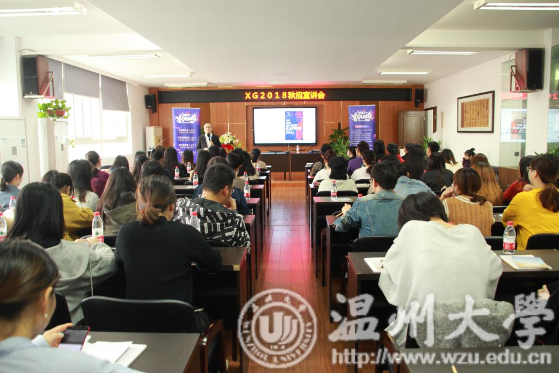 11月9日下午,XG2018“寻找不一YOUNG的你”秋招宣讲会在美院顺利举行。雪歌作为温州女装龙头企业,与温大也有着多年的交流,副总经理康峰莅临宣讲会现场。