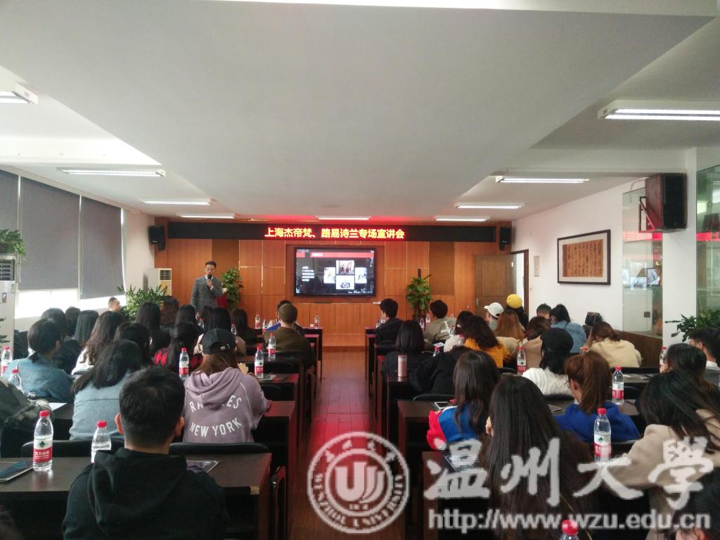 11月23日上午,由上海杰帝梵、路易诗兰组织的kaiyun开云官方网站专场宣讲会在美院2B4001成功举行。出席此次宣讲会的主要宣讲人有杰帝梵和路易诗兰的战略部总经理朱量和培训部经理陈超群。会议内容主要是品牌的概述、管培生项目的介绍以及面试的流程。