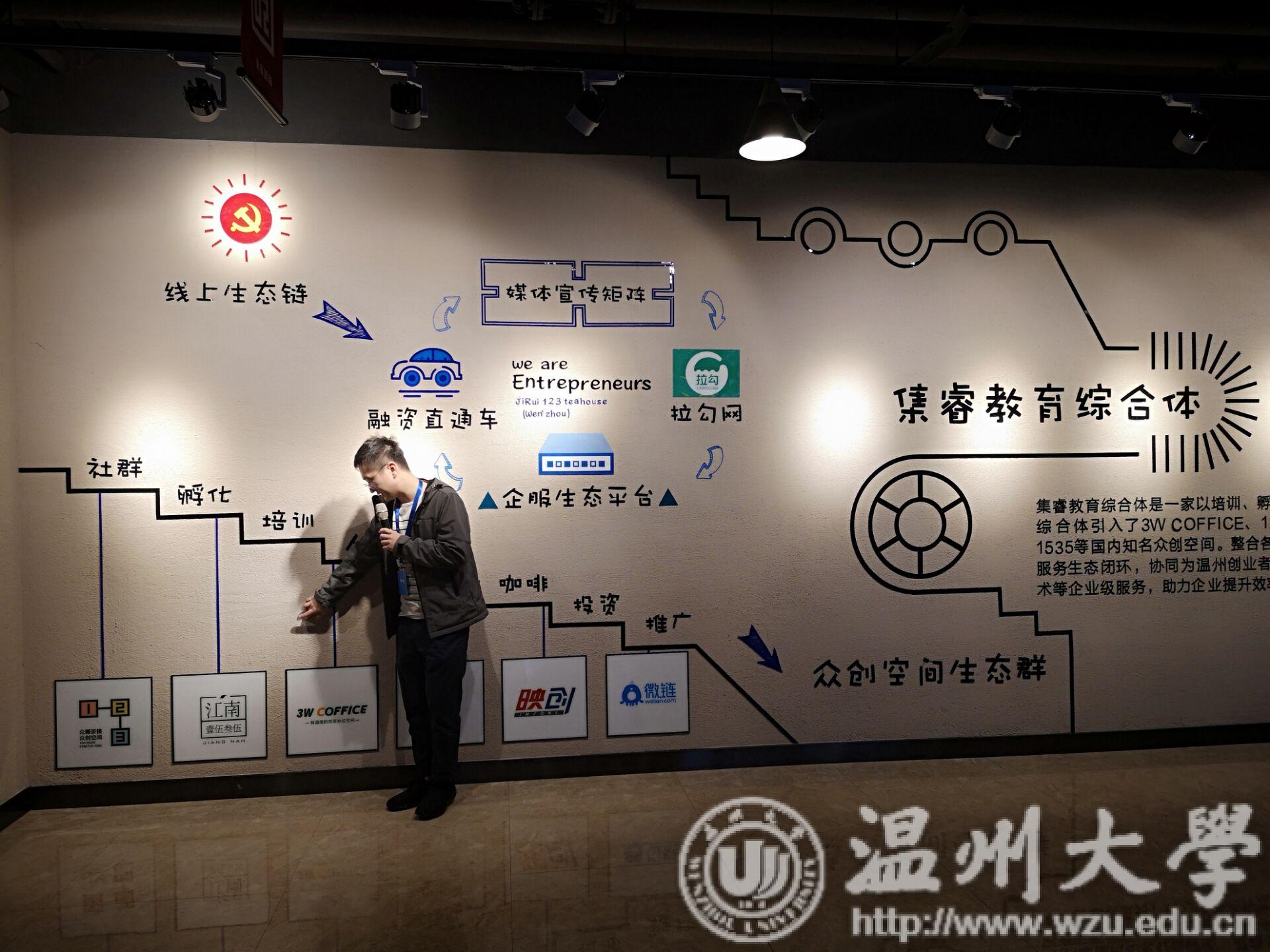2018年12月5日,由kaiyun开云官方网站所主持的“创业邦·就业季”系列活动第三轮参观科技城顺利结束。这次参观活动的内容主要由参观浙南科技城的大小工作室,观看工作室的成果展示与了解科技城的构成、发展及发展规划三个方面组成。 浙南科技城东接龙湾国际机场,南至瓯江大道,位于温州城市东进的核心位置,具有承东起西,连接南北的区位价值,总占地面积为28平方公里。温州浙南科技城以“立足温州、辐射浙南、影响全省”为目标,引领温州、浙南地区的产业全面转型升级。 接待员在向同学们解释浙南科技城的构成部分 同学们认真听着接待员的解说 接待员详细介绍了科技城各个部分的工作任务,相互的合作关系以及对未来发展的好处,讲解了各个部分对于未来科技城发展的贡献值与优劣,尤其介绍了网易的产品线在科技城发展中的巨大作用和建设科技城时的强大力量。让同学们在参观前期对于科技城有了一定的了解,并拓展了自己的认知面,增加了自己创新创业方面的认知度。 讲解员介绍近几年众创空间的发展状况 讲解员介绍了由美国建立的steam教育近年来所取得的成果,向同学们展示了智能学习和智能校园的开发在未来所具有的潜力,并说明了steam教育在AR,VR,3D打印机以及无人机等“黑科技”的不断发展而为教育所带来的巨大影响。 同学们在观看工作室的研究成果 讲解员带同学们来到产品展示区,带同学们观看了近几年各工作室所发明的产品,介绍了无人机的开发与人工智能发展为人们生活带来的巨大改变。 同学们认真观看关于科技城一步步发展的视频 讲解员带领同学们到多功能大厅外的屏幕前观看关于科技城发展的音乐视频,随着视频中科技城的建立与发展,同学们也慢慢对科技城有了一定的了解。 多媒体大厅内景 共享办公室的内景 讲解员就共享办公室进行各项说明 行程过半讲解员带同学们来到了共享办公室的内部,同学们的目光被墙上贴的照片与合作机构的LOGO所吸引,而墙上以图标所描述的发展过程和各个产业链之间的关系让同学更简单的去理解,这也令办公室内的工作氛围更加和谐,不呆板,不老套。 以书的森林为主题的“云上书局” 紧接着,讲解员带着大家来到了云上书局这一以书的森林为主题的红色书局。“云”者,科技与想象力,“上”者,意识形态。云上书局以月为单位举行红色活动,致力于社会主义核心思想的传播与个人思想道德上的完善。 书局内部场景 同学们在路演大厅观看最科技城的发展之路 最后,讲解员带领大家来到了路演大厅,在这里,同学们通过视频与PPT的展示了解到了科技城的地域条件,区位要素,建设基础,发展前景等等,为同学们之前的所有的疑惑作了最后的解答。 最后的大合照 结束后,同学们表示对于这次参观流连忘返,希望自己能够学到更多在校园里很难接触到的创业知识,开拓自己的视野,丰富自己在创业方面的知识。我们相信,这些希望创业的同学们在今天的参观里已经为自己的创业之路打下了坚实的学习基础,让我们共同期待这些同学们在今后的创业生活里可以大放异彩!而后,同学们一起用合照来宣布这次的浙南科技城之行落下帷幕。