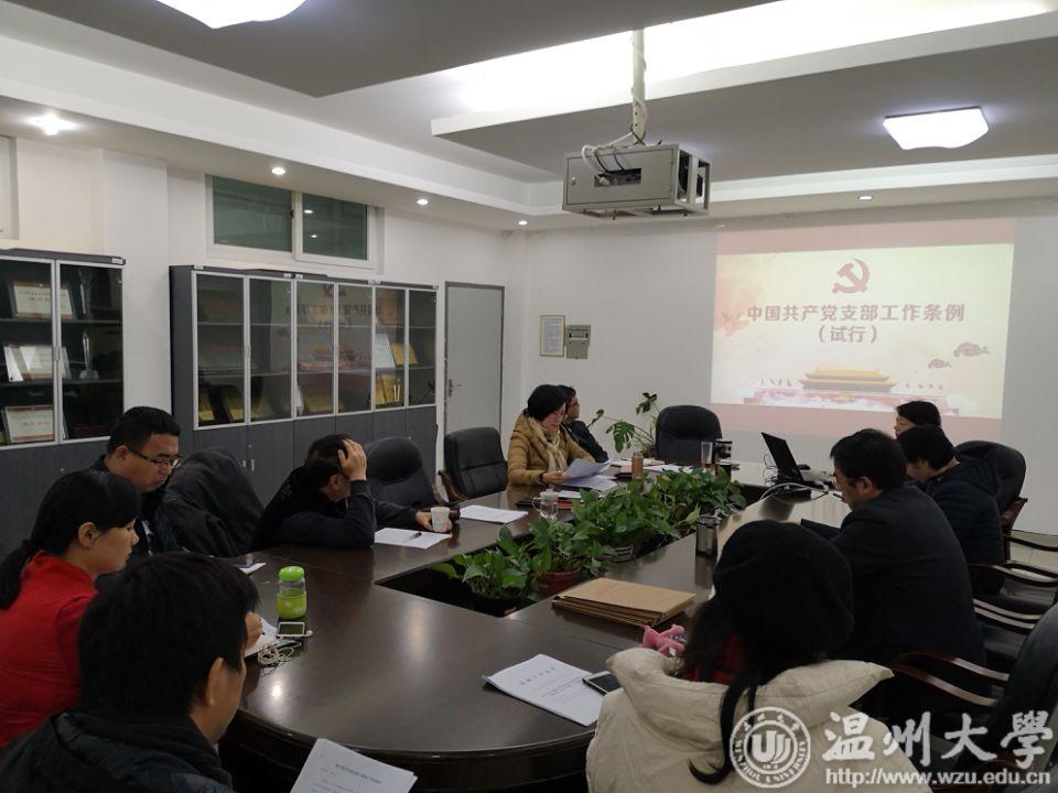 12月13日上午,kaiyun开云官方网站在2B216召开党总支中心组理论学习(扩大)会,专题学习中共中央印发的《中国共产党支部工作条例(试行)》。学院党政班子成员、总支委员、各支部书记参加学习。会议由学院党总支书记张丽萍主持。 张丽萍书记组织大家学习了《条例(试行)》内容,她交流阐述了《条例(试行)》颁布的重大意义,全面讲解了贯穿《条例(试行)》的基本精神。从《条例(试行)》的总则、组织设置、基本任务、工作机制、组织生活、党支部委员会建设、领导和保障等方面梳理了《条例(试行)》的重点内容。 《中国共产党支部工作条例(试行)》以习近平新时代中国特色社会主义思想为指导,既发扬我们党长期积累的党支部建设宝贵传统,又体现党的十八大以来基层创造的好做法好经验,规定明确、符合实际。制定和实施《条例(试行)》,是推动全面从严治党向基层延伸的重要举措,为新时代党支部建设提供了基本遵循,对加强党的组织体系建设,全面提升党支部组织力、强化党支部政治功能,巩固党长期执政的组织基础,意义十分重要。 张丽萍书记强调,学习贯彻《条例(试行)》一要提高政治站位,认清大抓党支部建设的重要性;二要把握要求,围绕提升党支部组织力、战斗力,强化政治功能,加强支部建设;三要建立标准体系,提升党支部的标准化、规范化建设。 根据总支工作安排,下一步各党支部要进一步开展学习《条例(试行)》活动,持续学习贯彻《条例(试行)》精神。