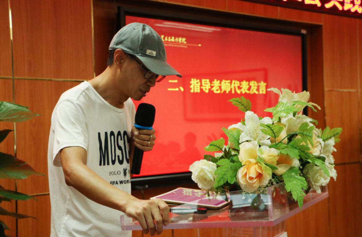 出征仪式上,学院党委副书记杨丽君致辞发言,提出了三点要求,“完全第一、扎实实践、立足学习”,对暑期社会实践工作做出重点部署和寄予厚望。随后,指导教师黄良代表发言,黄老师用两条路“专业修炼之路”、“旅行之路”描绘了暑期社会实践的生活,希望同学们在假期增才干,有收获。接下来,团委学生会副主席李颜介绍了2019年美院实践队基本情况和实践注意事项。蚂蚁行动实践队队长方萌狄同学代表介绍了各实践队的实践内容,并代表全体实践队同学作出安全承诺。