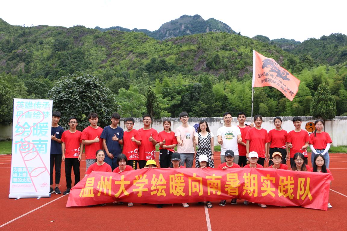 “绘暖向南”暑期实践队是一支由美术与设计,外国语、数电、生环、商学院等学院学生组成的暑期实践队,共有22名学生。该队伍致力于以艺术装饰希望小学,以公益性支教传递知识作为主题,力求为童真的心,绘上最暖的太阳。队伍通过支教,墙绘,走访探访微信公众号宣传以及原创视频等形式来开展社会实践活动。
