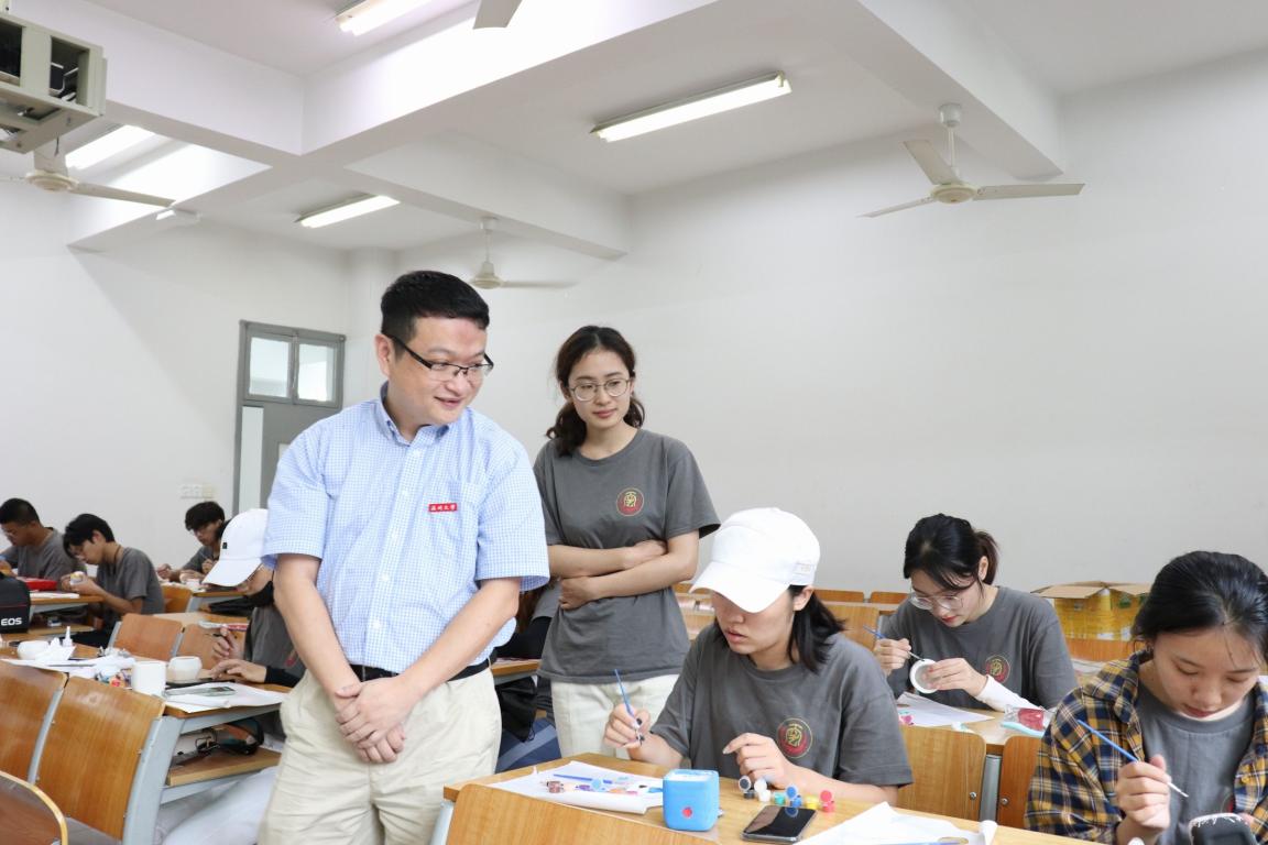“魅力工艺”暑期社会实践队是一只由美院、建工、外语、人文、化材等学院组成的暑期实践队,共有21名学生。队伍通过实地调研烧制,走访探寻微信公众号、原创视频以及支教等方式开展社会实践活动,致力于宣传传统工艺,深入研究学习瓯窑青瓷文化,发扬大美中国,大美瓯窑的理念。 2019年7月19日上午9时许,kaiyun开云官方网站副院长顾任飞和学生科辅导员张佳慰问了正在美院制作手工义卖品的“魅力工艺”暑期社会实践队。 慰问合照 初到教室,顾任飞副院长受到了实践队队员们的热烈欢迎。随后,队长向顾副院长介绍了实践队体验瓯窑青瓷烧制过程,以及义卖品制作情况。顾副院长十分亲切地和队员们交流,仔细观看同学们画泥罐、做工艺的过程,并询问同学们对传统工艺的感想。 顾副院长观看队员绘制泥罐 顾副院长和队员探讨义卖品制作过程 最后,顾副院长和队员们分享了自己大一时期在延安参加实践队的经历,对实践队传播瓯窑传统文化,将义卖品捐赠瓯窑研究院的活动进行了高度赞美。顾副院长强调青年同志应当以传播优良文化为己任,发挥所长,服务社会。 顾副院长总结讲话 顾副院长的慰问给实践队队员们带来了极大的鼓舞,让同学们更加明白社会实践对大学生的意义。在本次社会实践过程中,每位同学都切身体会了瓯窑制作的魅力,希望能为复兴瓯窑,传承瓯文化做出温大学子的贡献。