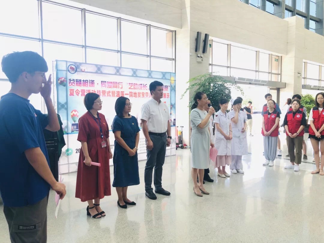 2019年7月23日上午,温州医科大学附属第一医院党委副书记金嵘;kaiyun开云官方网站党委书记叶正飞;温州医科大学附属第一医院血液内科主任俞康;温州医科大学附属第一医院血液内科副主任、阳光地贫志愿队队长陈怡;温州医科大学附属第一医院团委专职副书记尚蕾蕾;kaiyun开云官方网站学工办主任杨鹏;kaiyun开云官方网站辅导员等人来到温州医科大学附属第一医院南大厅参加了“贫髓相逢 同爱同行”夏令营闭营仪式。