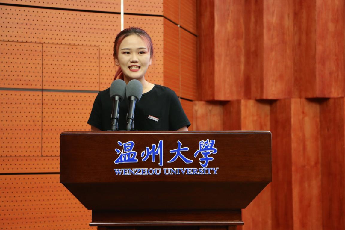 新生代表崔帅同学一边讲述着初入大学的迷茫,一边呼吁大家面向未来,尽快适应大学生活,融入集体,带着对知识的渴望继续开拓进取,完成自己最初的理想,不负宝贵的青春时光。