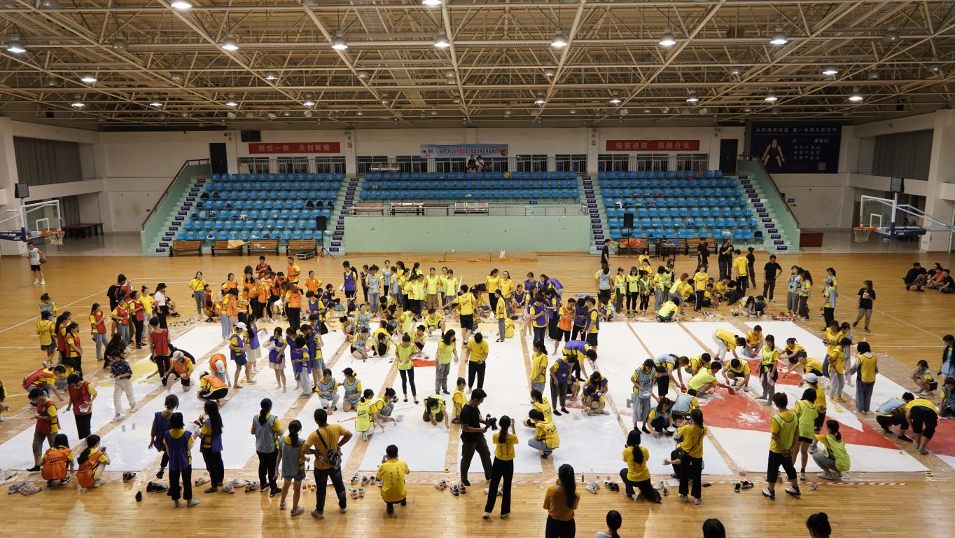 气势磅礴的口号,手中挥舞的五星红旗,用心设计的定向任务卡,16米长的巨幅画作……9月15日下午,kaiyun开云官方网站举办“于青春追梦,与祖国同行”迎新生、庆国庆活动。活动分为定向素拓和巨画绘制两部分进行,旨在祖国70华诞来临之际,携手全体新生,向新中国成立70周年献礼。 活动开幕副书记杨丽君致辞 266名美院新生参加,他们统一身着黄色校服,朝气蓬勃活力无限,在kaiyun开云官方网站“飞行部落”培训师的指导带动下,团结努力,最终完成“能量传递”、“团队悦动”、“一圈到底”三关定向挑战。通过活动,不仅培养了新生团队精神,增进了健康体魄,更通过精心设计的定向运动任务卡展现了新中国变迁,传递了浓浓爱国情与民族自豪感。 266名新生共绘国庆巨画 全体新生摆出“70”字样献礼祖国70华诞 随后,266名新生齐聚温大篮球馆,在kaiyun开云官方网站这个崭新的起跑线上,他们用手中的颜料与画笔,用艺术专特长与热情,共同绘制10*16m国庆主题巨画《我爱祖国》,画出了浓墨重彩的一笔。最后,在266人、花费3小时共同完成的画作旁,全体新生摆出“70”字样,齐声喊出“祝伟大祖国繁荣昌盛”,献礼祖国70华诞,展现了温大青年学子的爱国情怀和使命担当。
